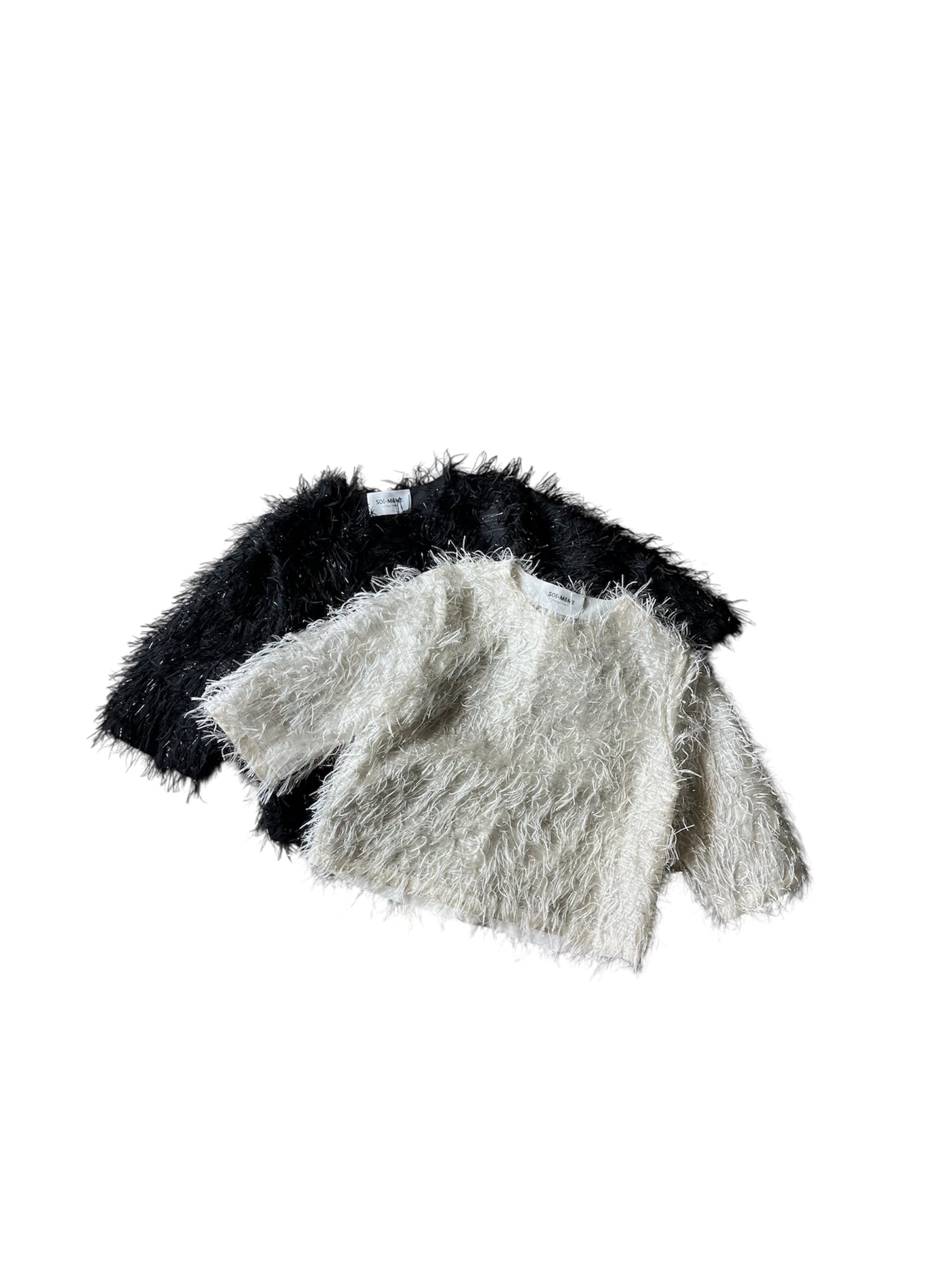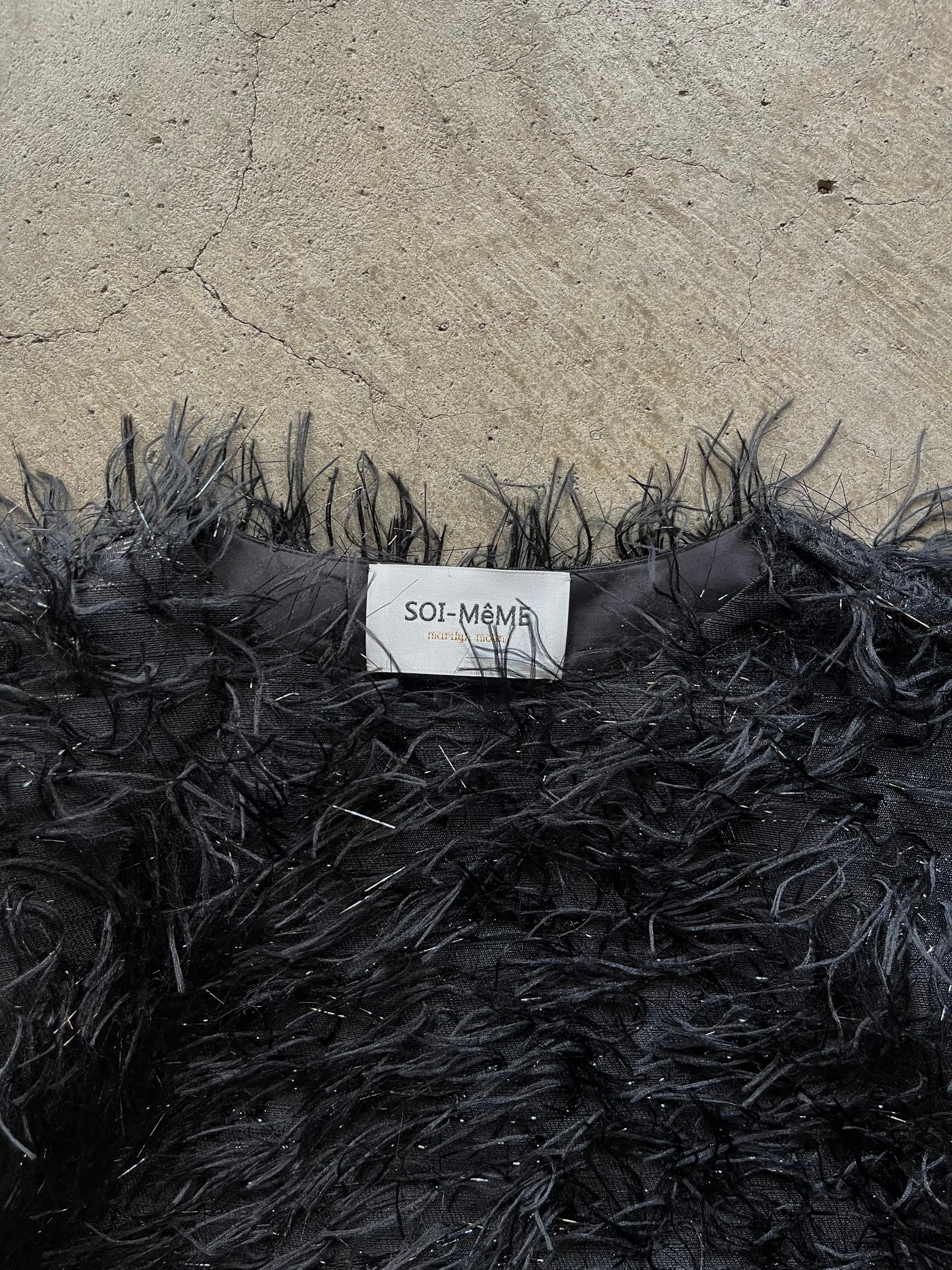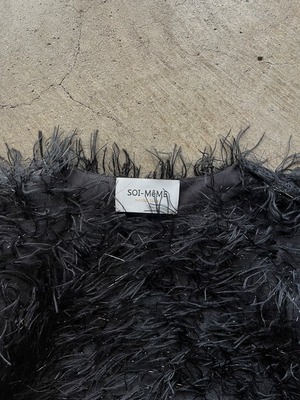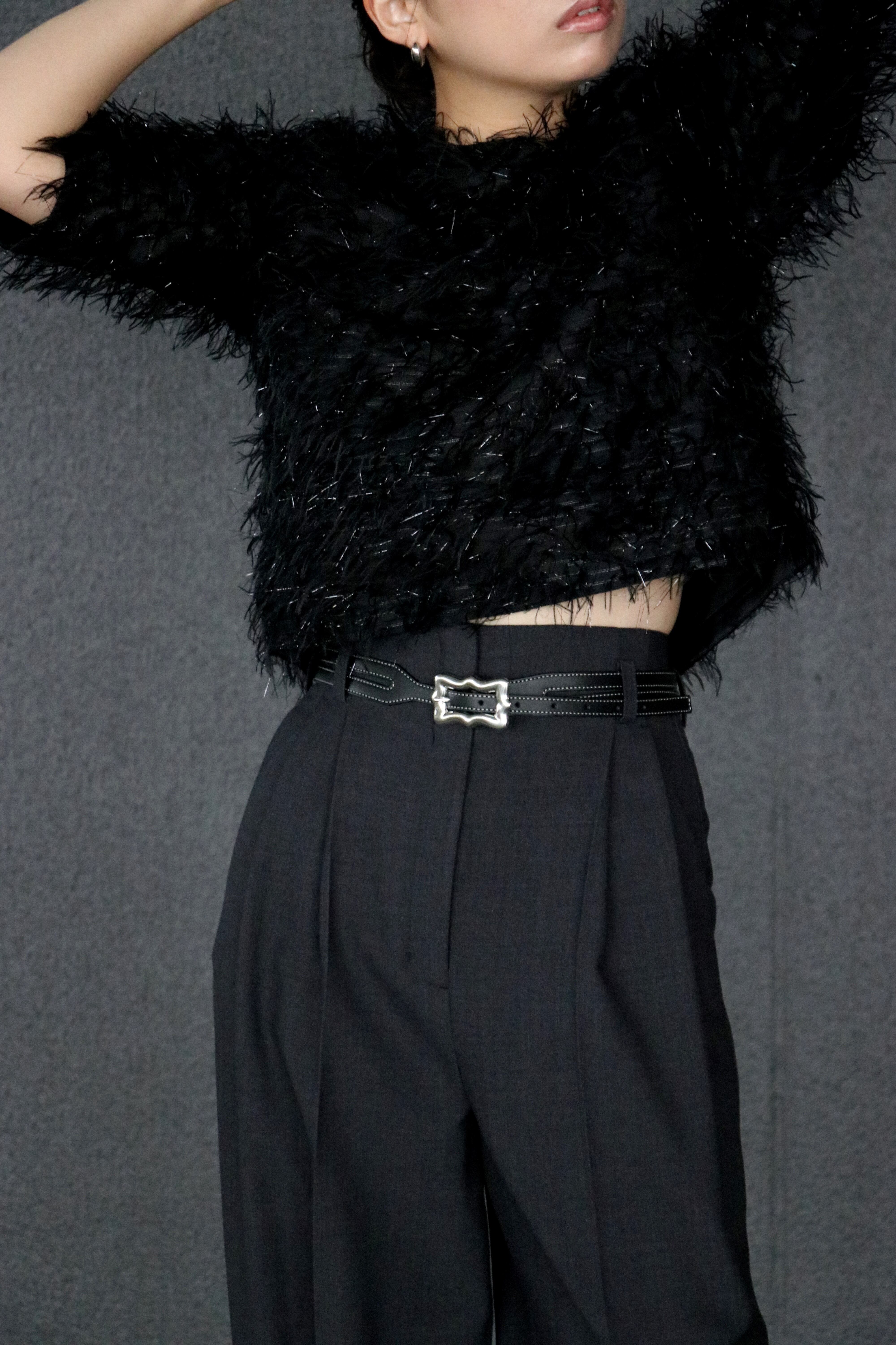 SOI-MeME別注の生地を使用した煌めくラメとフリンジがリュクスでクチュールライクなシアートップス。