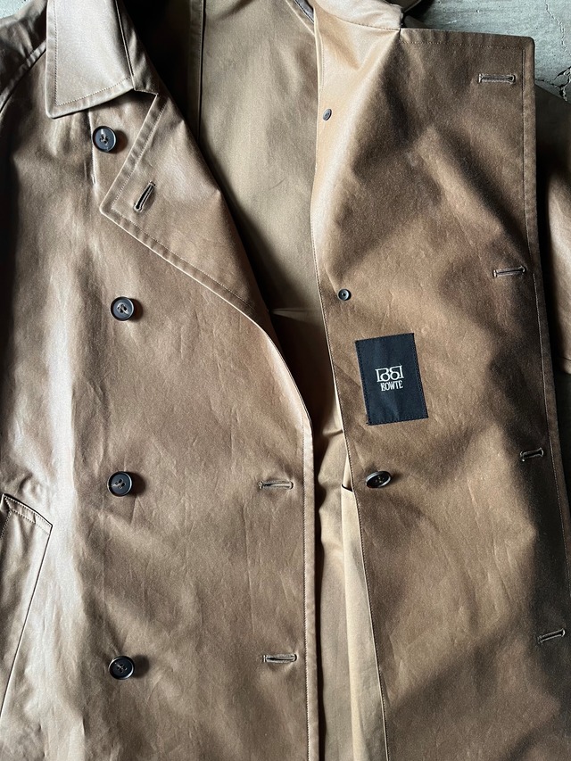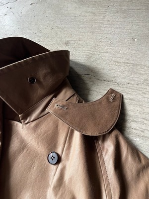 全体のボリューム感をたっぷりととりながらもインナーライナー裏地を付けず軽くライトに仕上げることで重くならず、ウエストベルトも元々 men'sの物と思わせる低めの重心に置いています。レングスもフルロングでリラクシングなサイジングがキメ込まず着流して羽織る今の気分です。