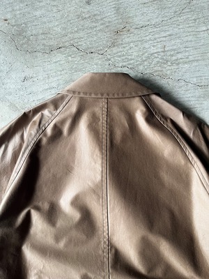 高密度なコットンにコーティング加工を行い更にワッシャー感のこなれた印象を仕上げに加えた、風合いに拘り抜いた素材。