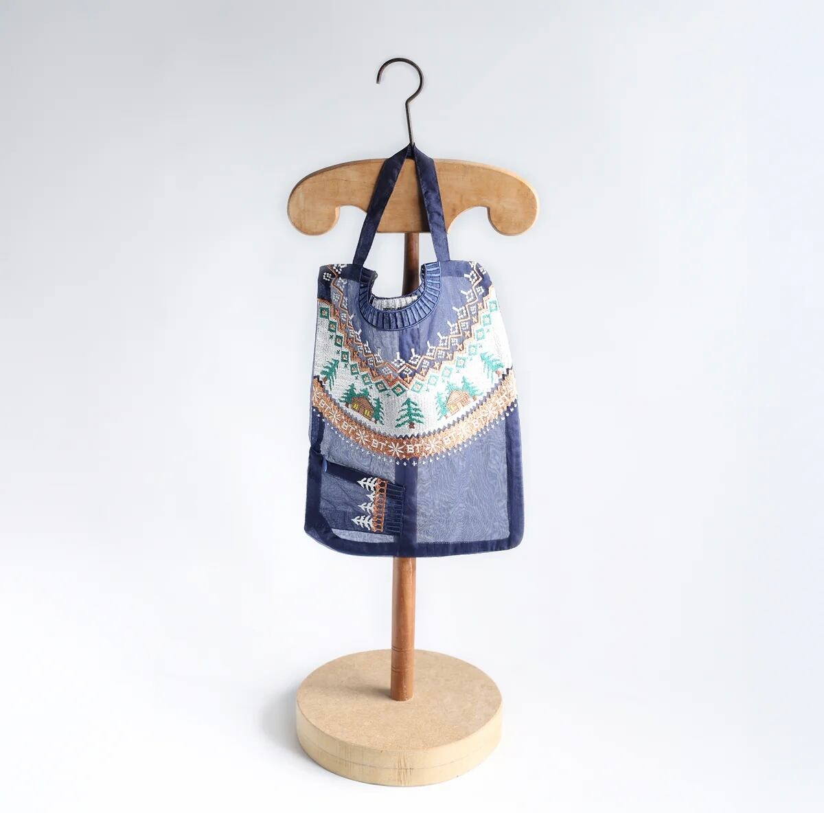 横部分と袖部分にジッパーのついたお出かけセーターバッグ。
