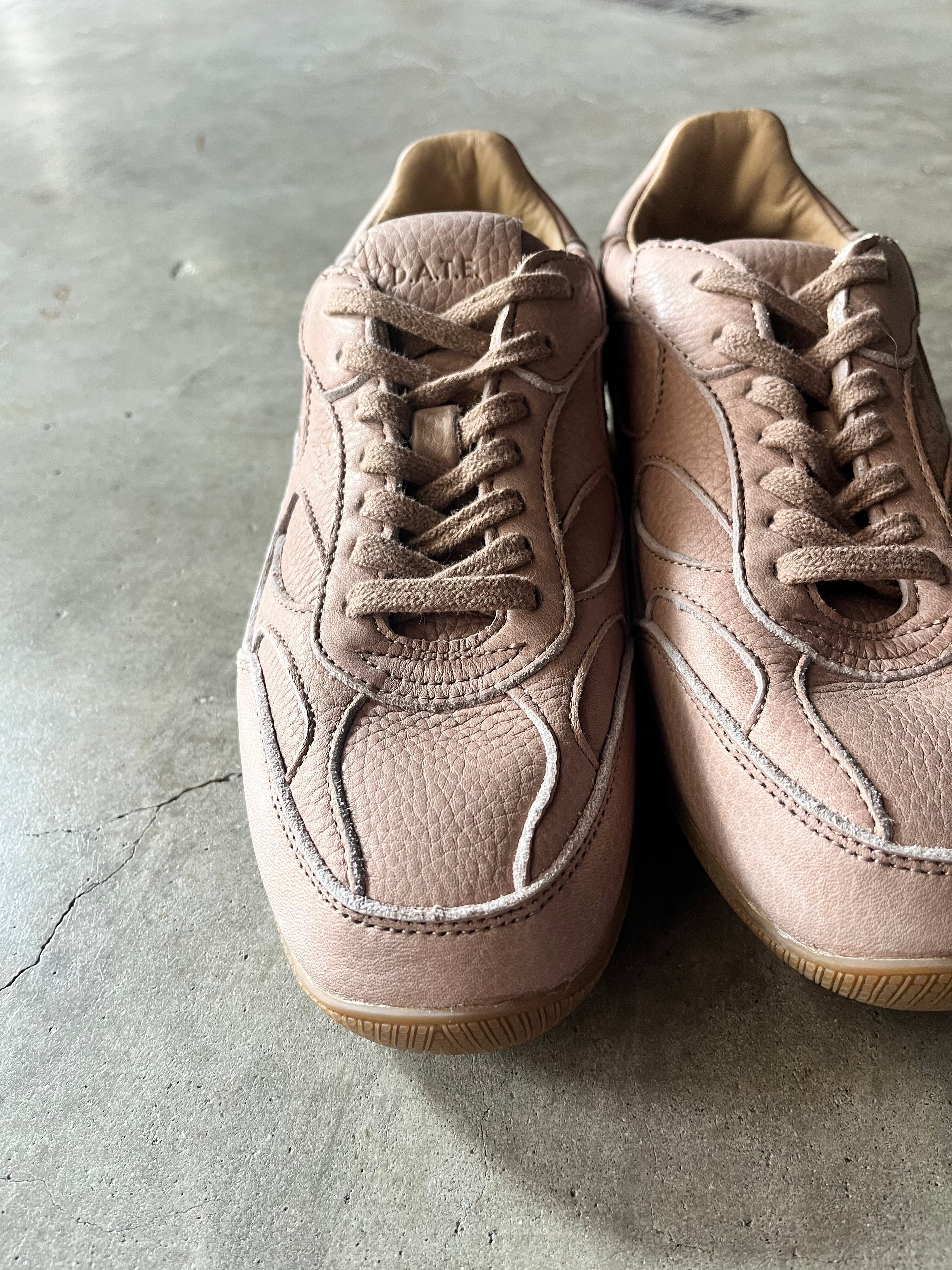 クッション性のあるライニングと軽量ガムソールで一日中快適。同色ステッチでミニマル&クリーン、さりげないサイドロゴ。ガムカラーのアウトソールが上品さとレトロ感をプラス。幅広いコーデに対応デニムからセットアップまで、きれいめカジュアルの“外し”にも最適。