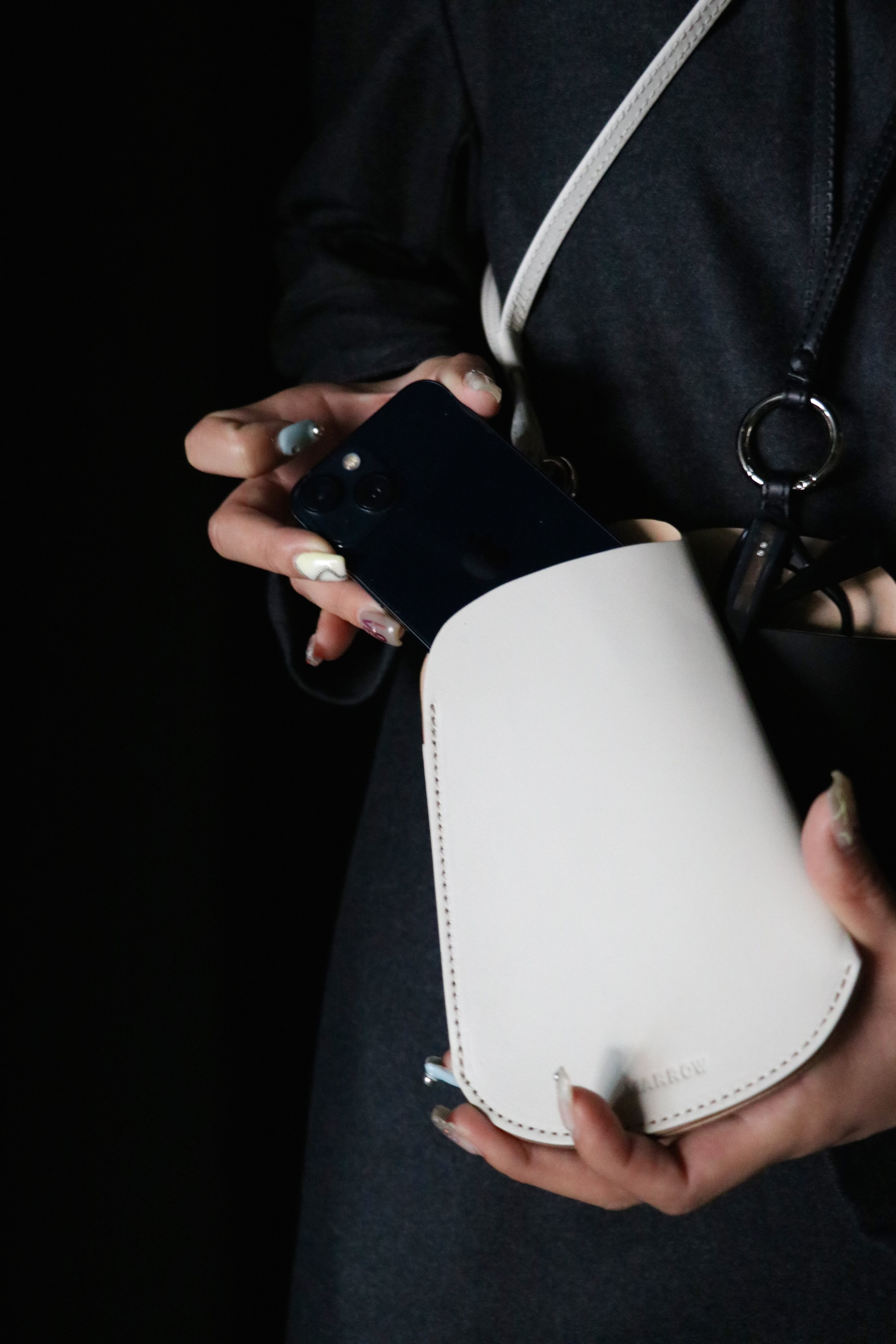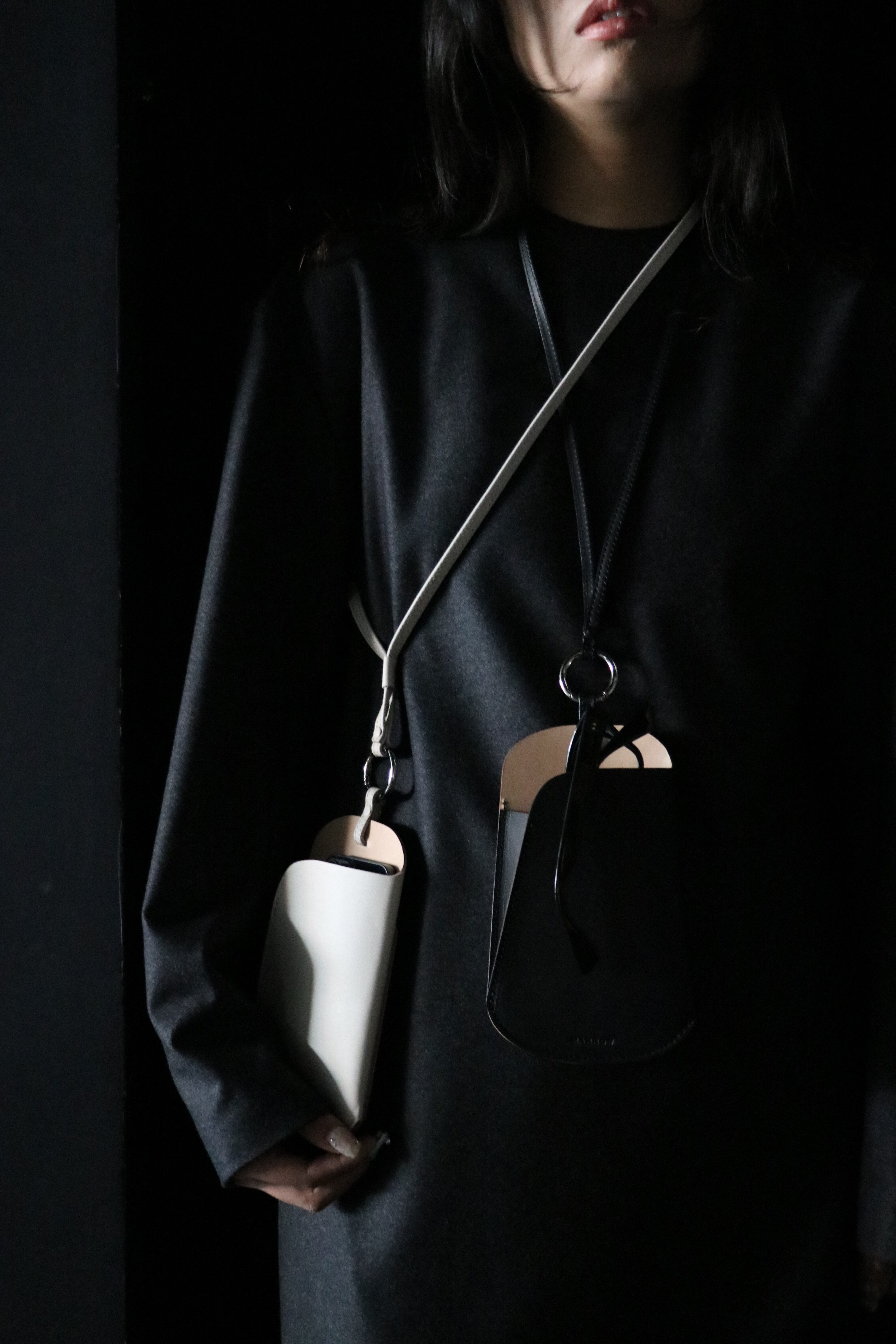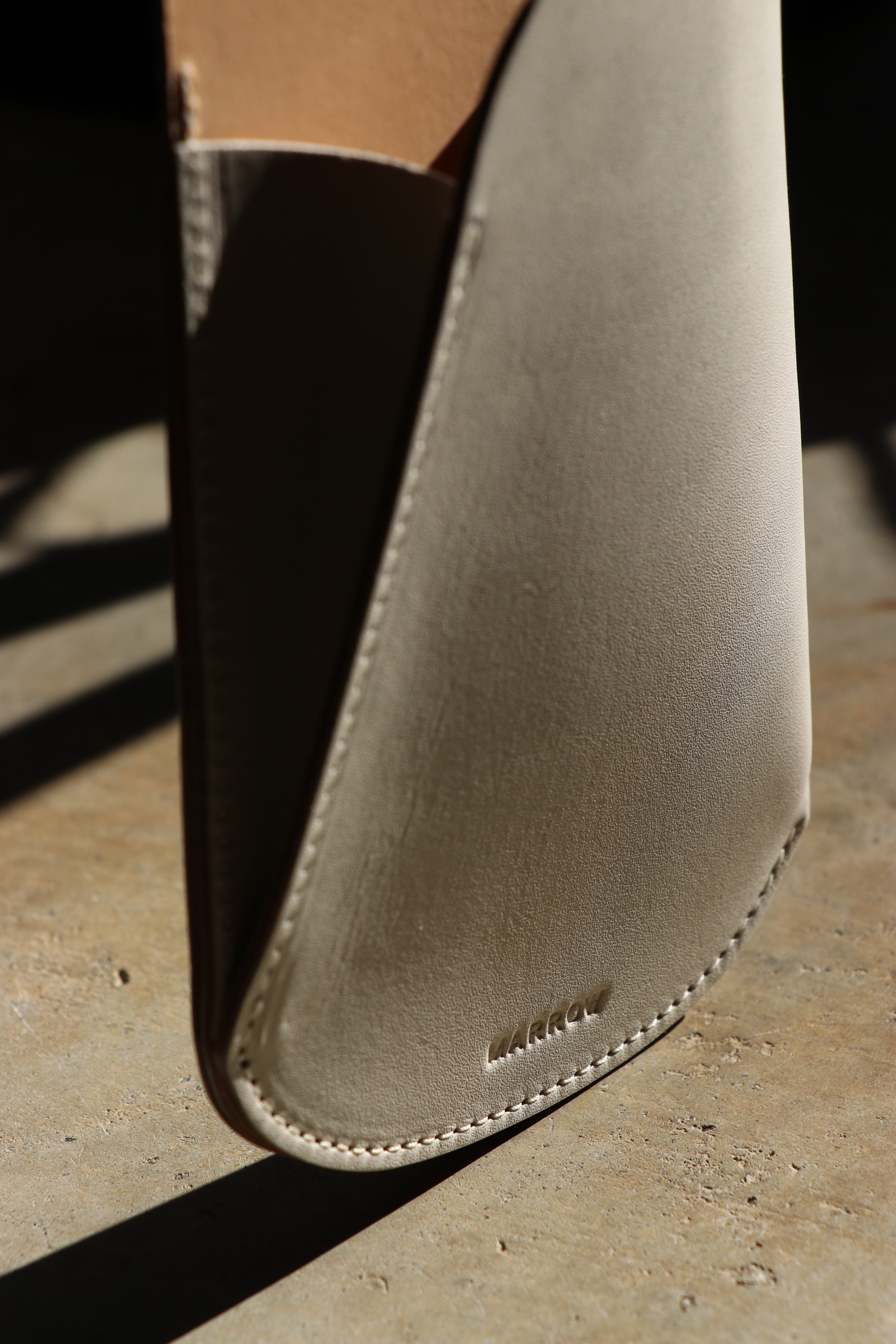 シーズンを問わず携帯することが多くなったサングラスやメガネを入れるショルダー。定番の財布などと同様に、薄く漉いたスムース革とヌメ革を貼り合わせ1枚仕立てで作られている。メガネだけに限らず携帯も十分に入れられるサイズとなっており、背中側にもポケットが付くのでカードなどが収納でき便利に使うことができる。本体と紐を繋ぐ金具は開閉可能となっているので、チャームなどを通したり、またこの商品自体をバッグの持ち手などに下げて使用することもできる。