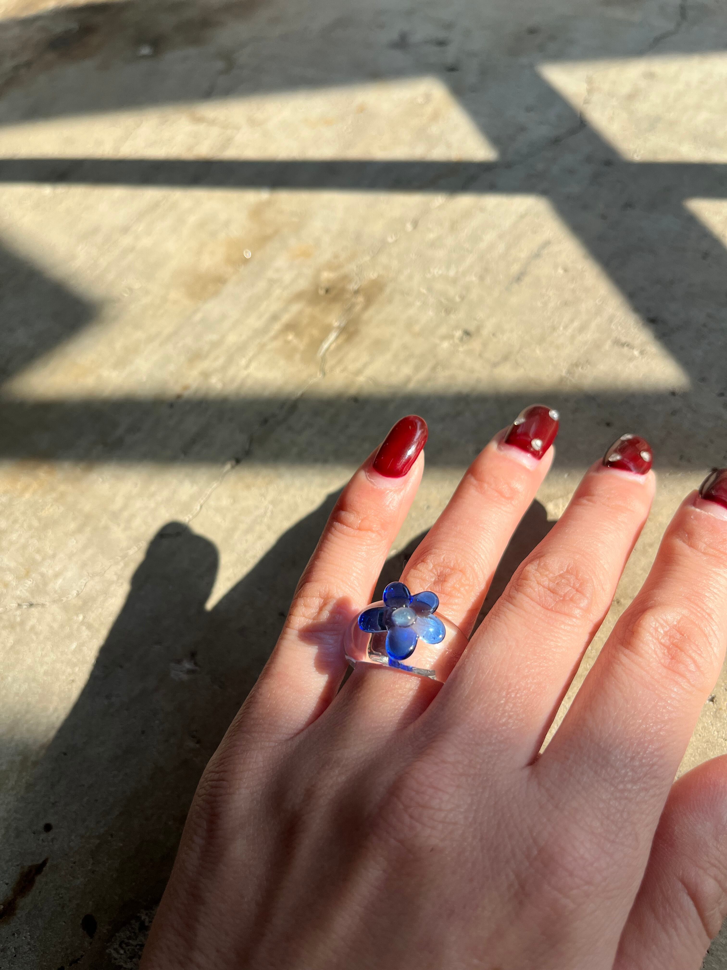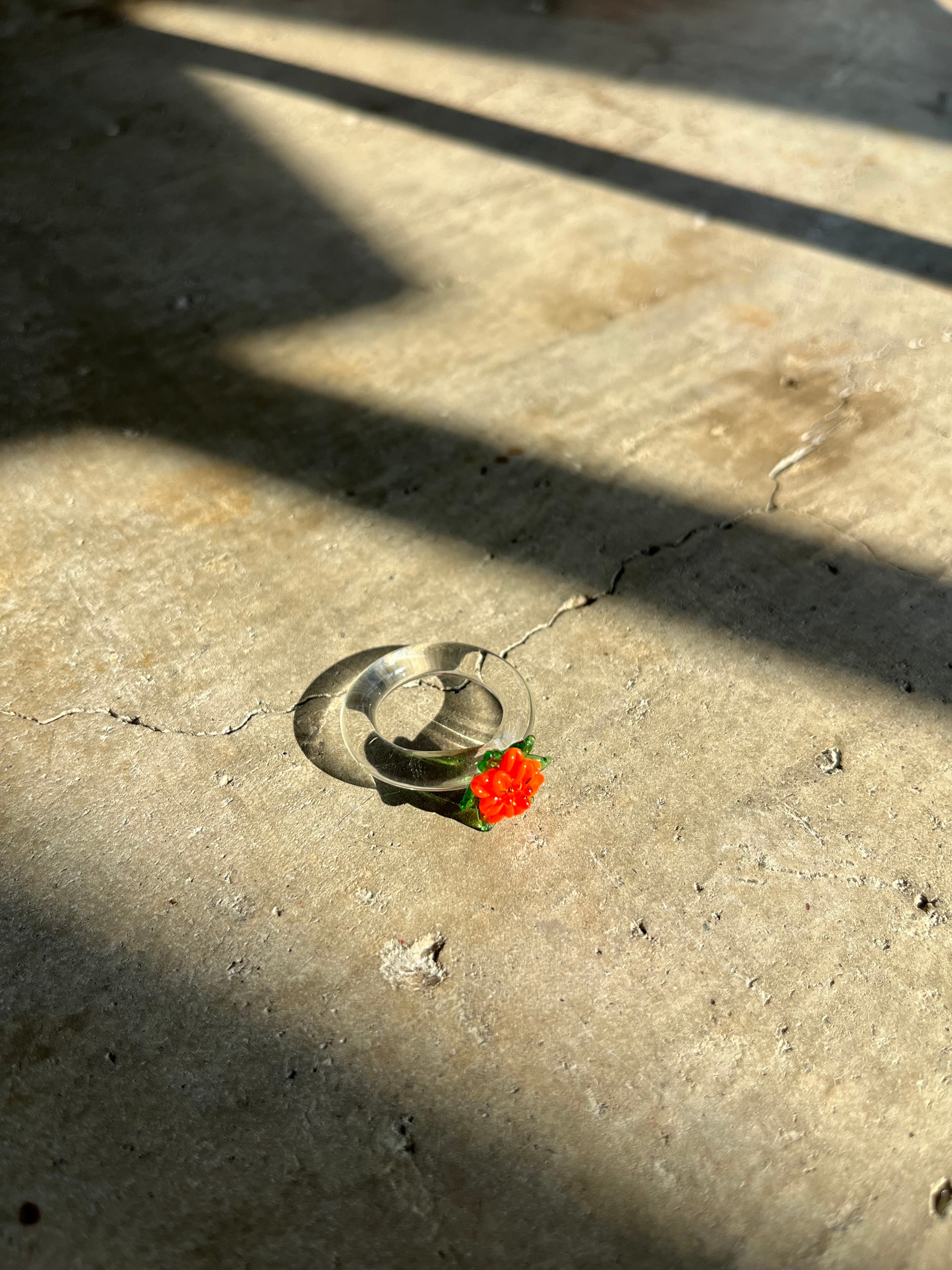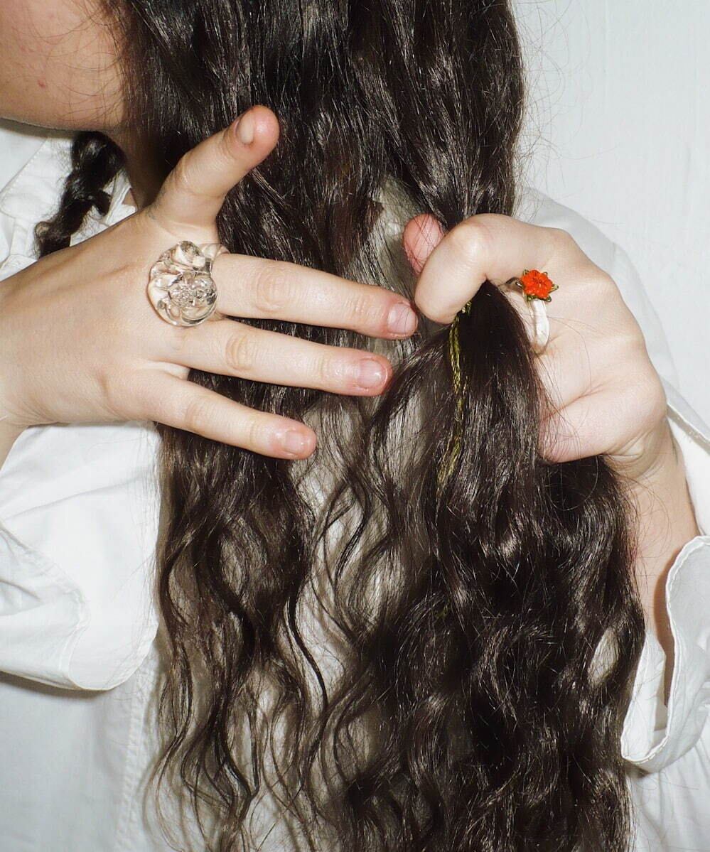 Ninfaのハンドメイドで作られたガラスリング。光が当たると透けが美しく、手元が華やかに♡