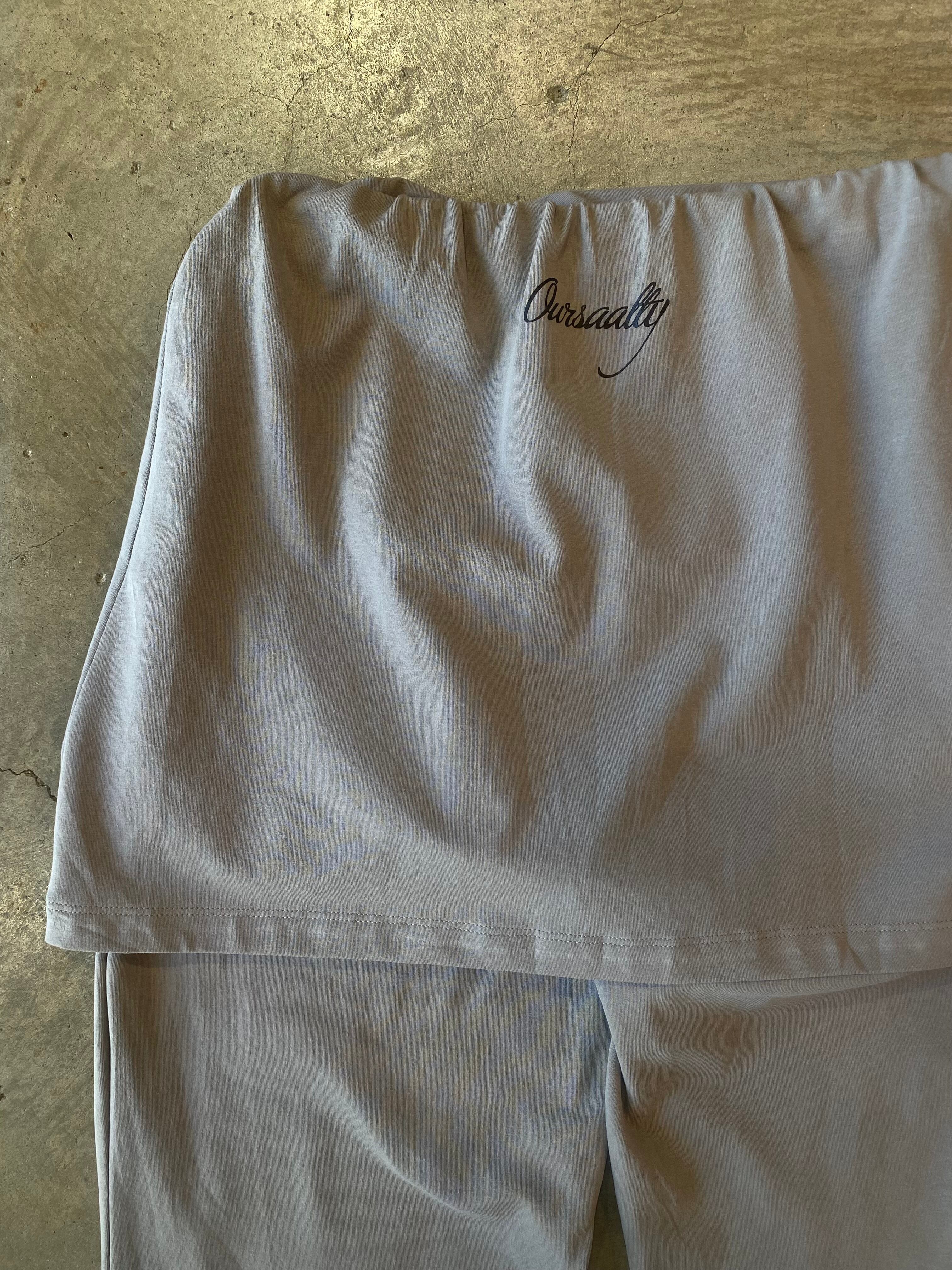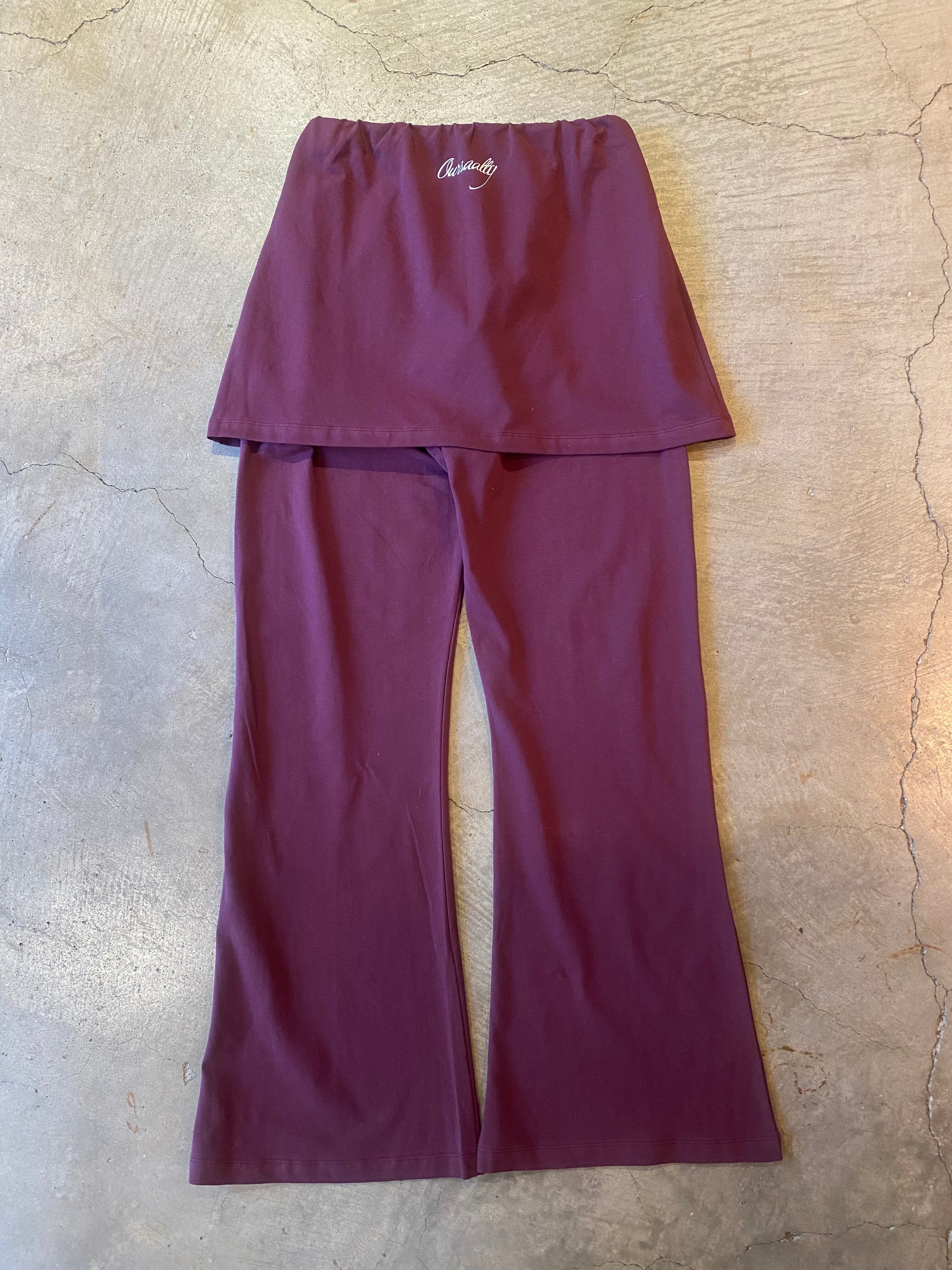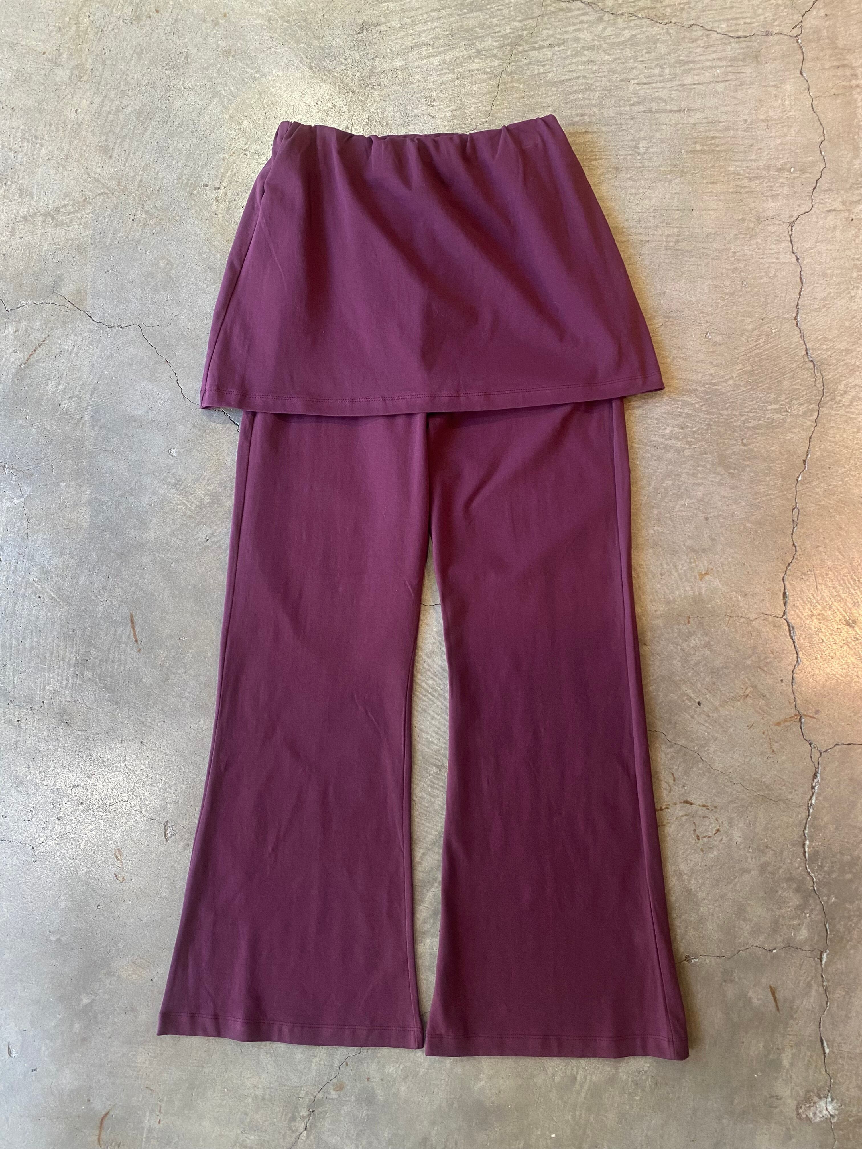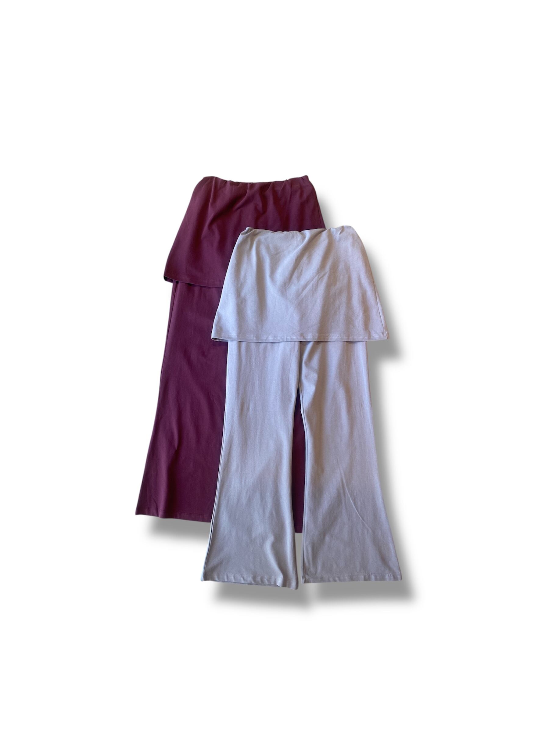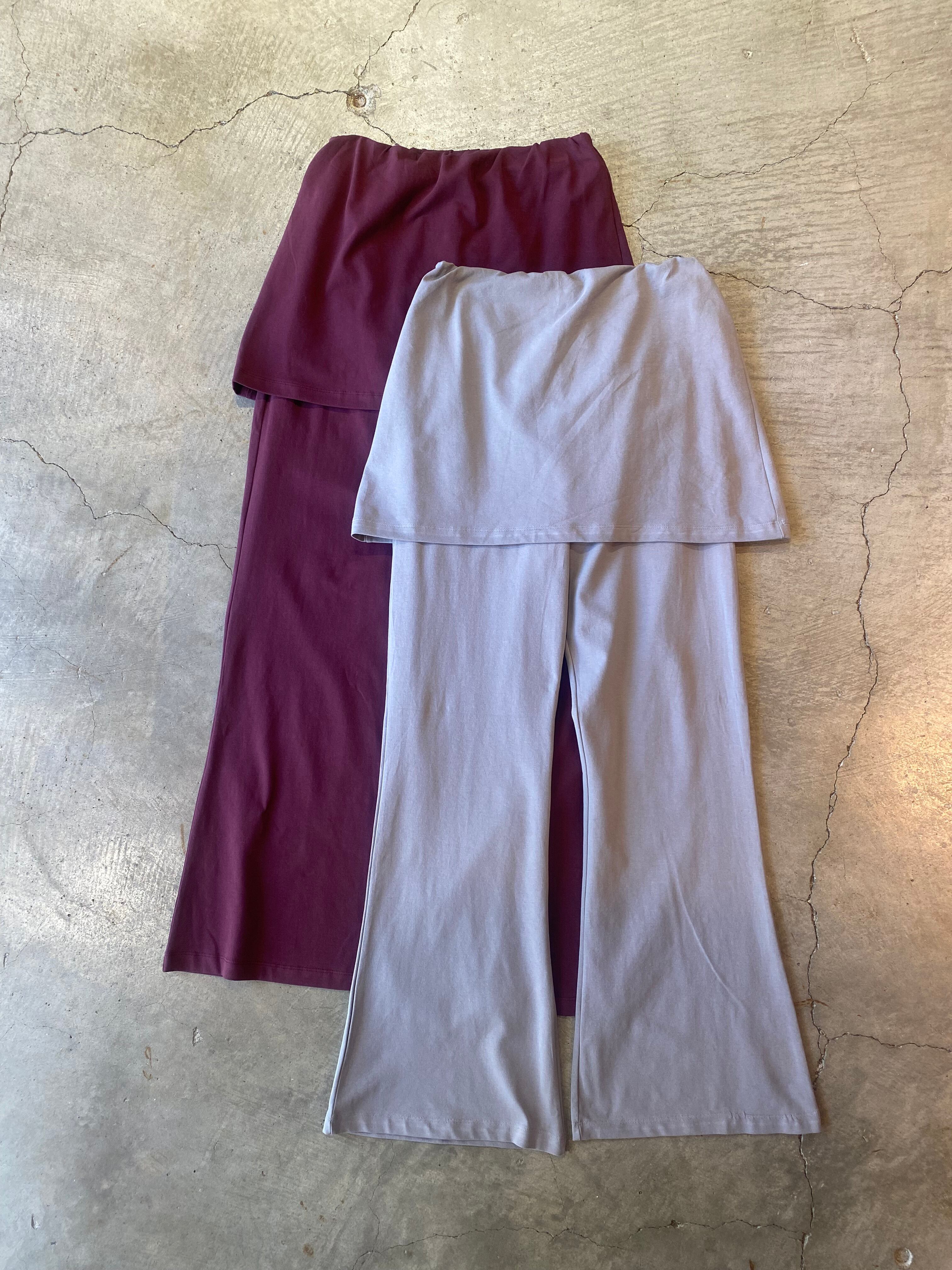 これは、OurSaltyのブーツカットフィットの上にミニスカートが付いたスカートパンツアイテムで、体型を隠すのに適しており、快適なフィット感があります。