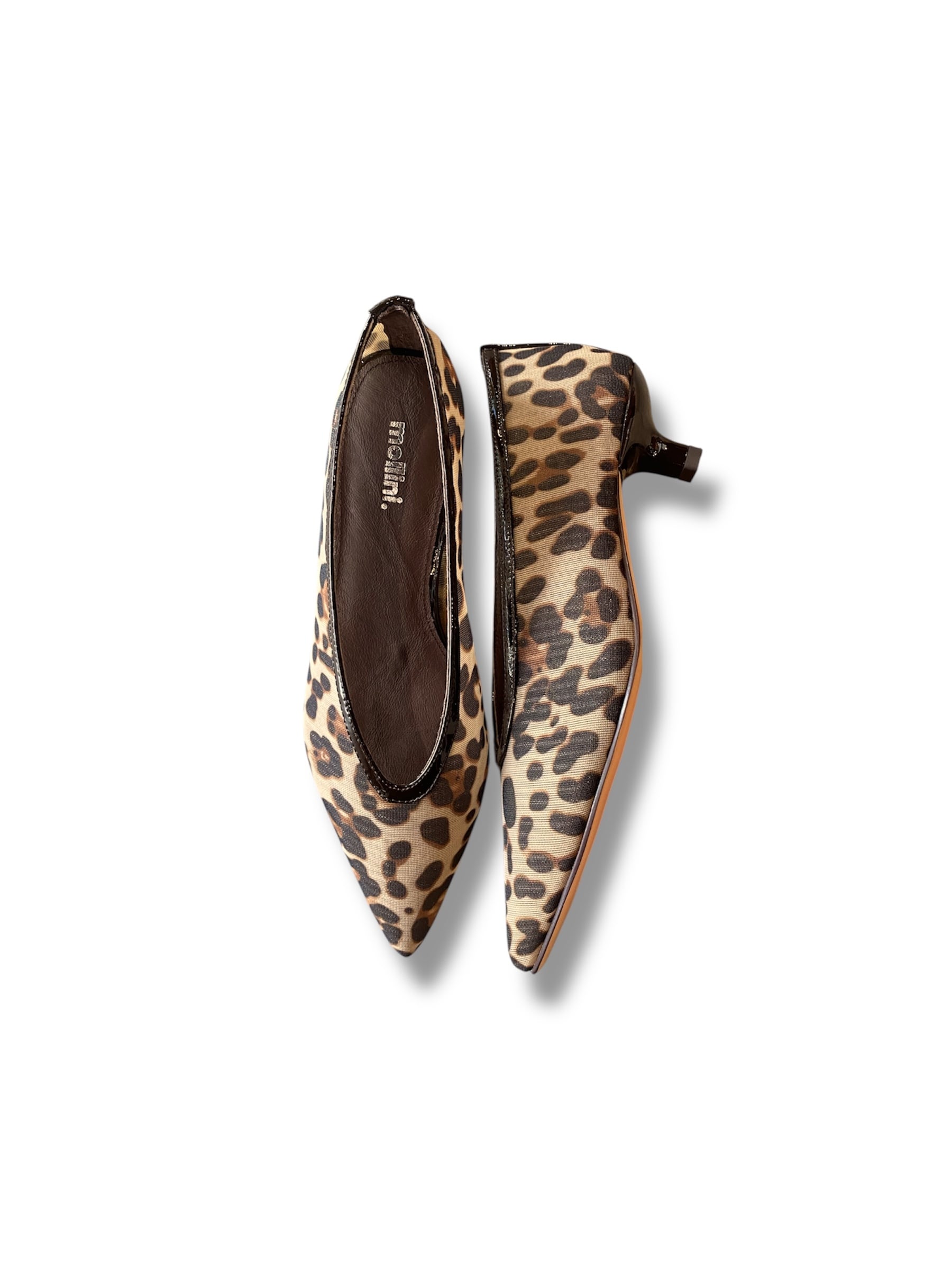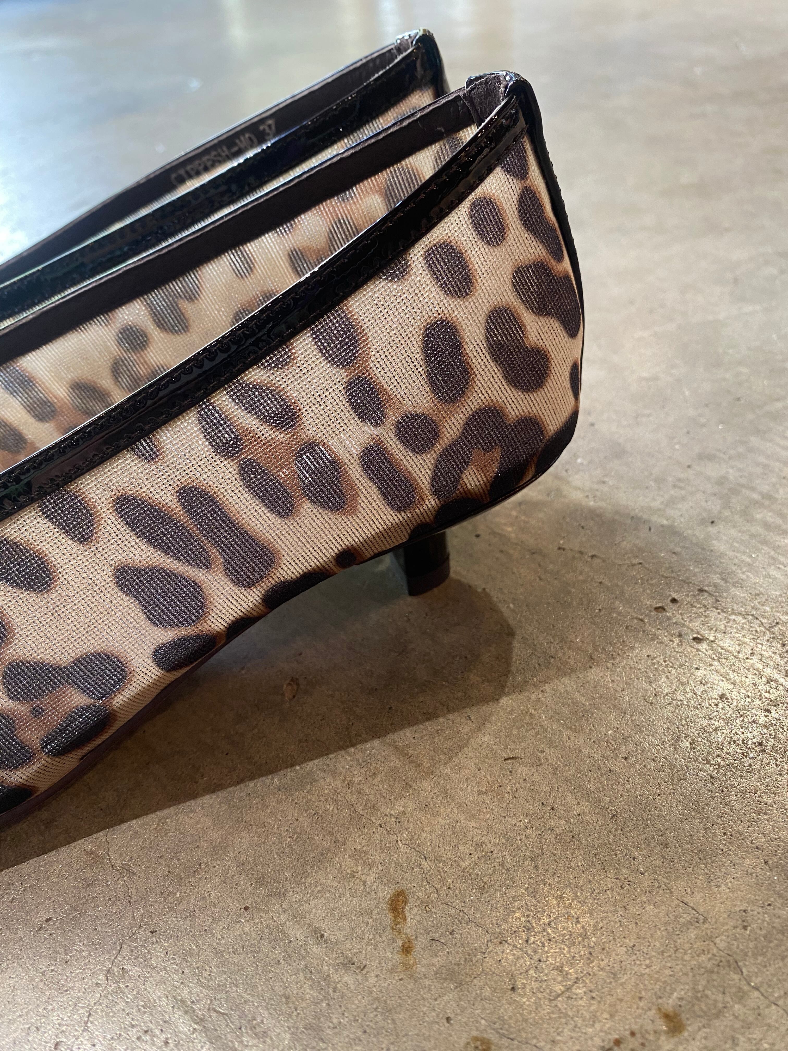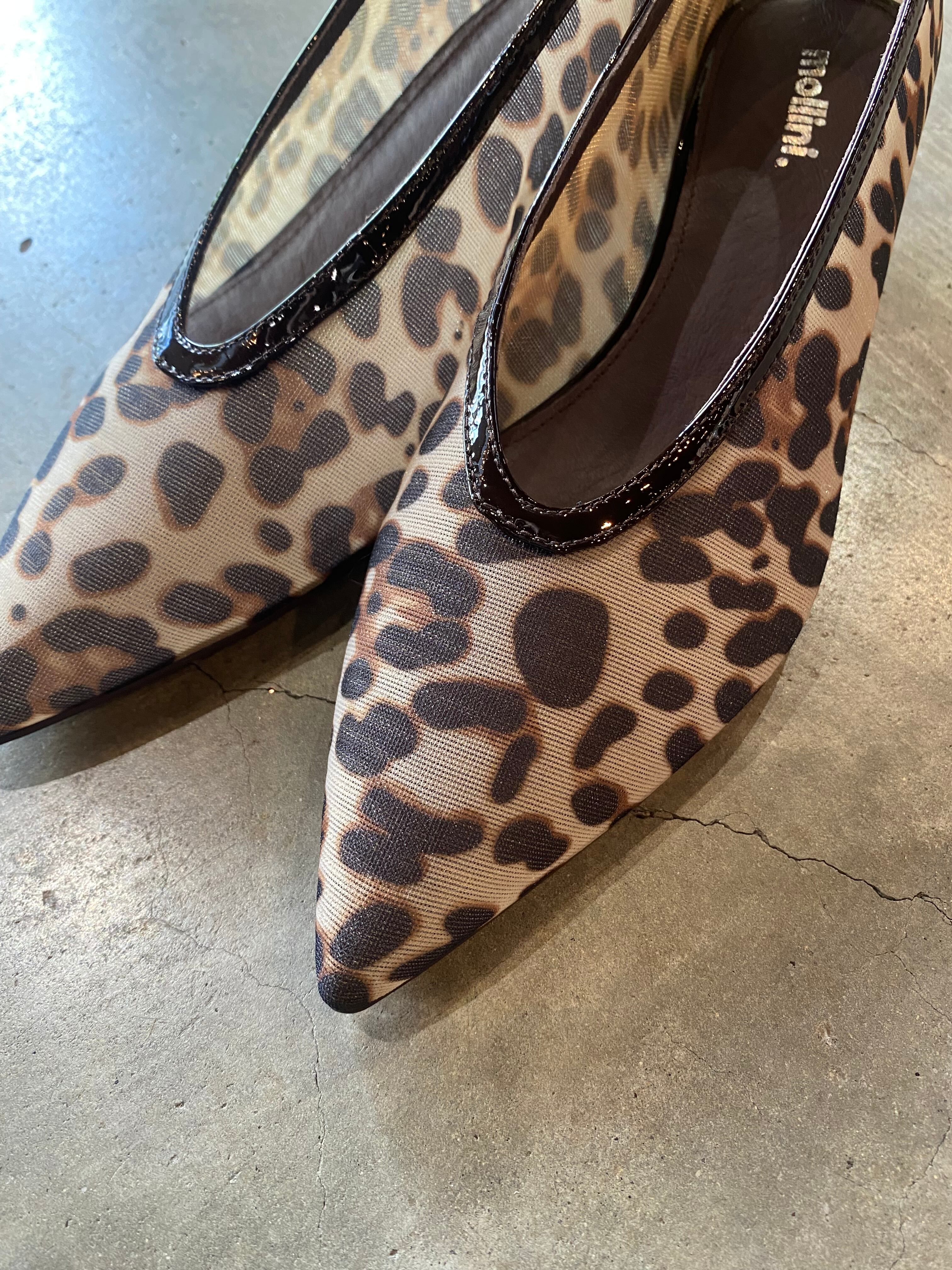 メッシュのレオパードサンダル。程よく透け感があるので、上品な雰囲気で履いていただけます。カジュアルなシーンから、お呼ばれ等のフォーマルなシーンまで幅広く使える♡ detail:Mesh size:3cm(ヒール高さ)