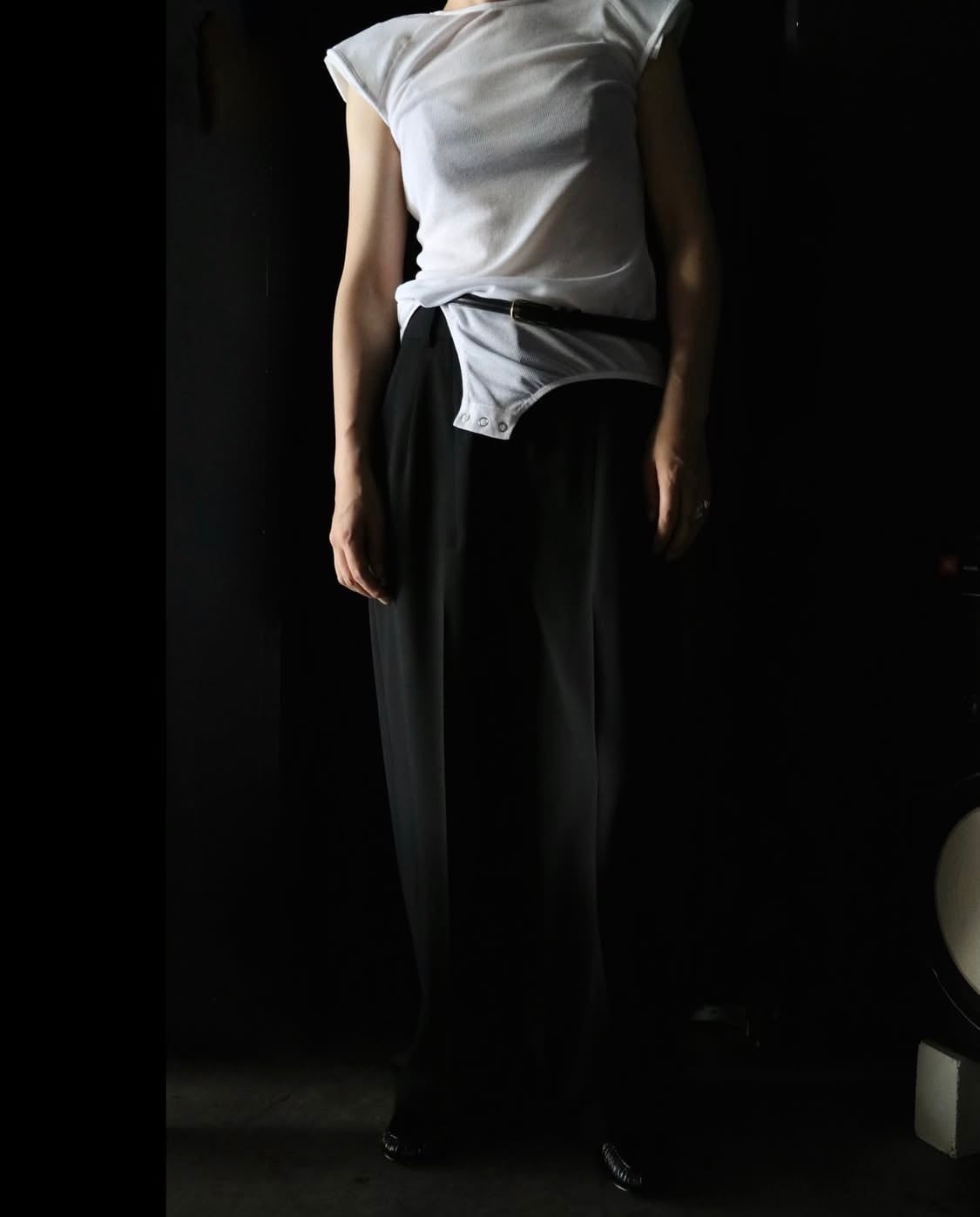 ワイドパンツによくある、タック部分の膨らみが気にならない様に造っております!ウエスト周りがスッキリと見えでもワイド。脚長効果も◎