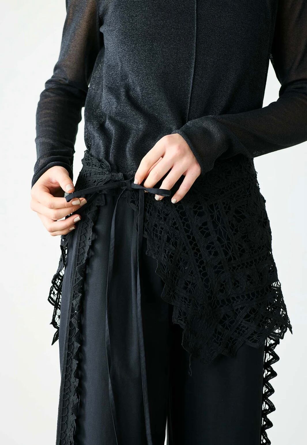 Tシャツやブラウスの上に重ねるだけで、お手持ちのお洋服が違う印象に。また、ウエストに巻く事も可能です。