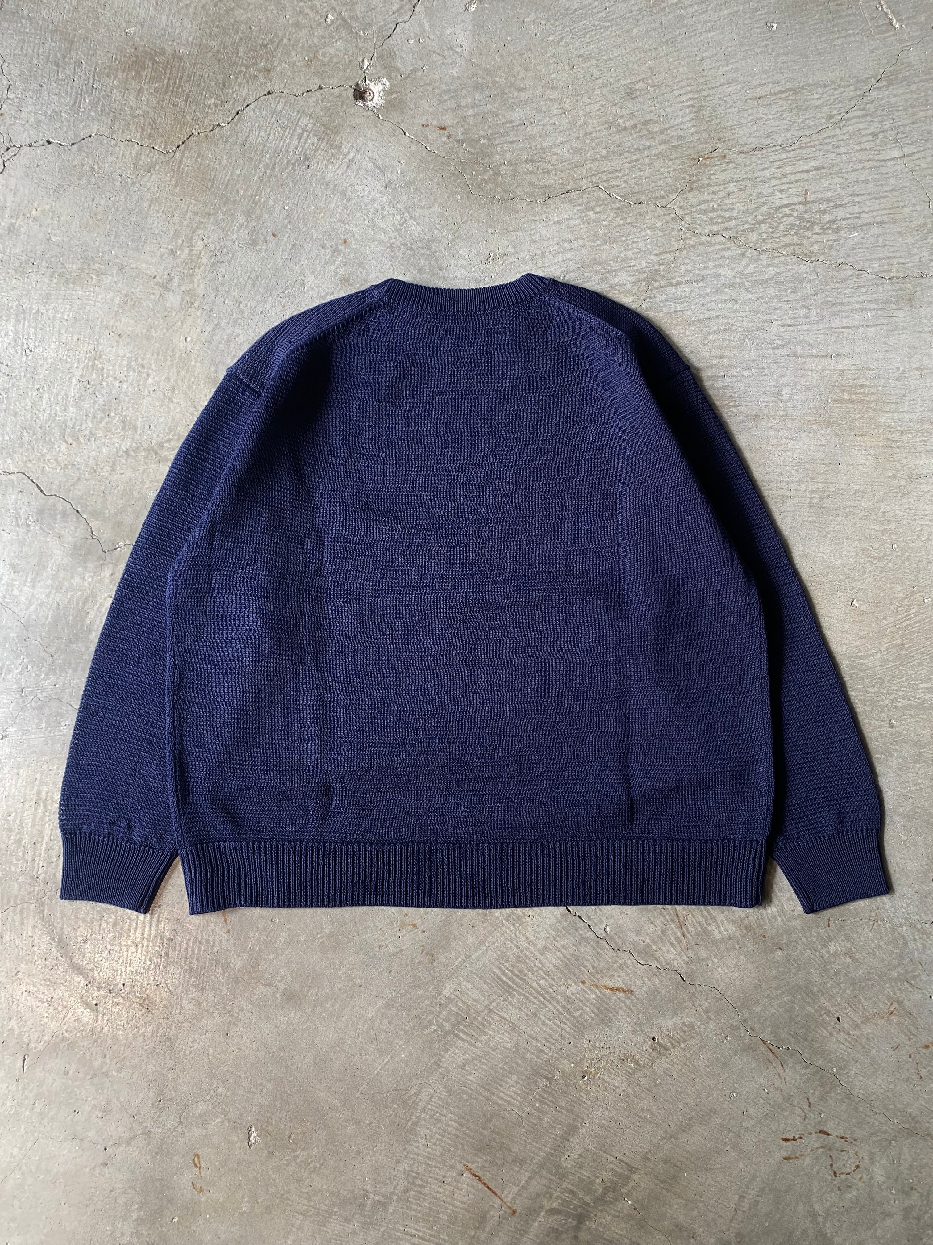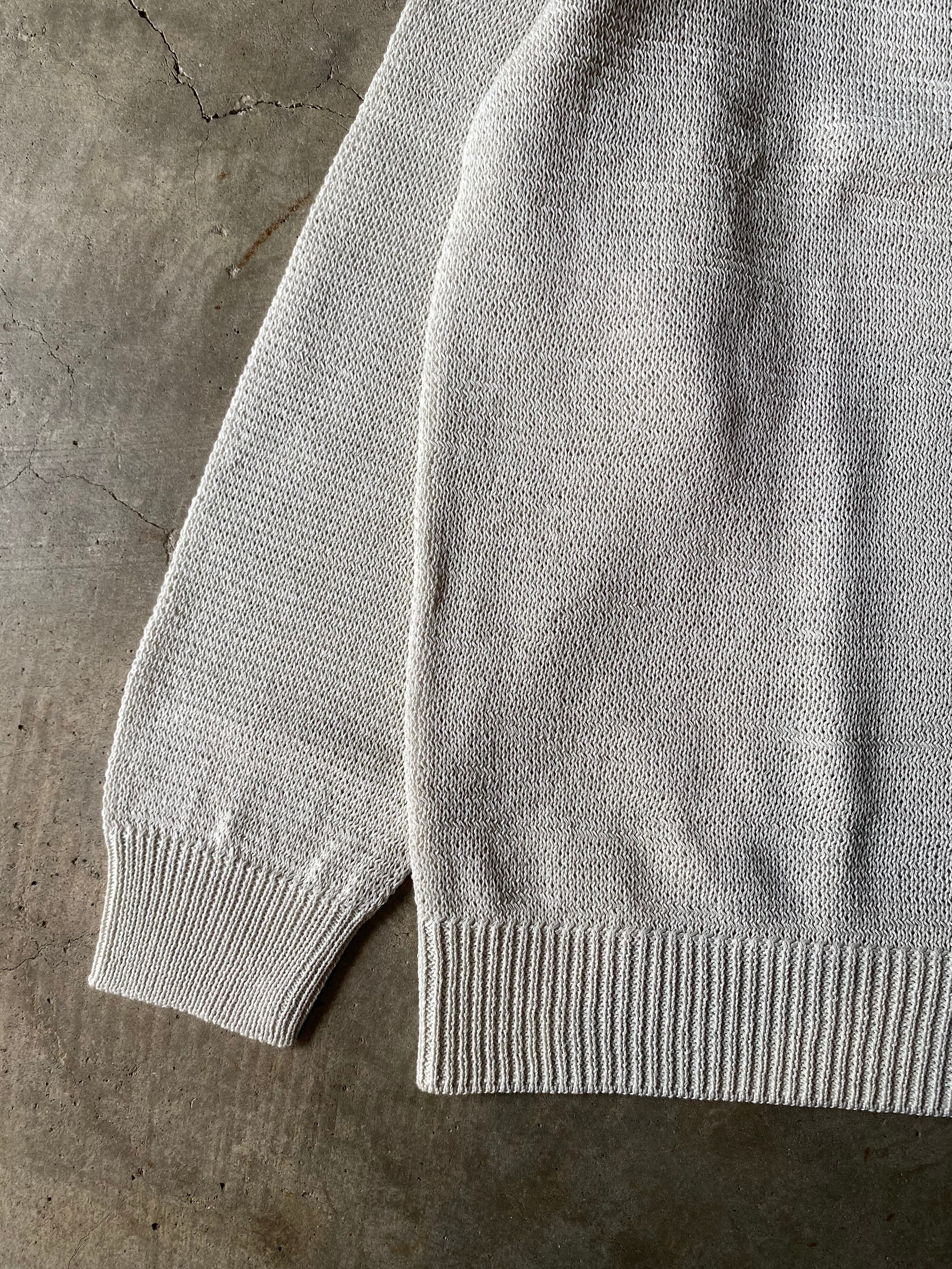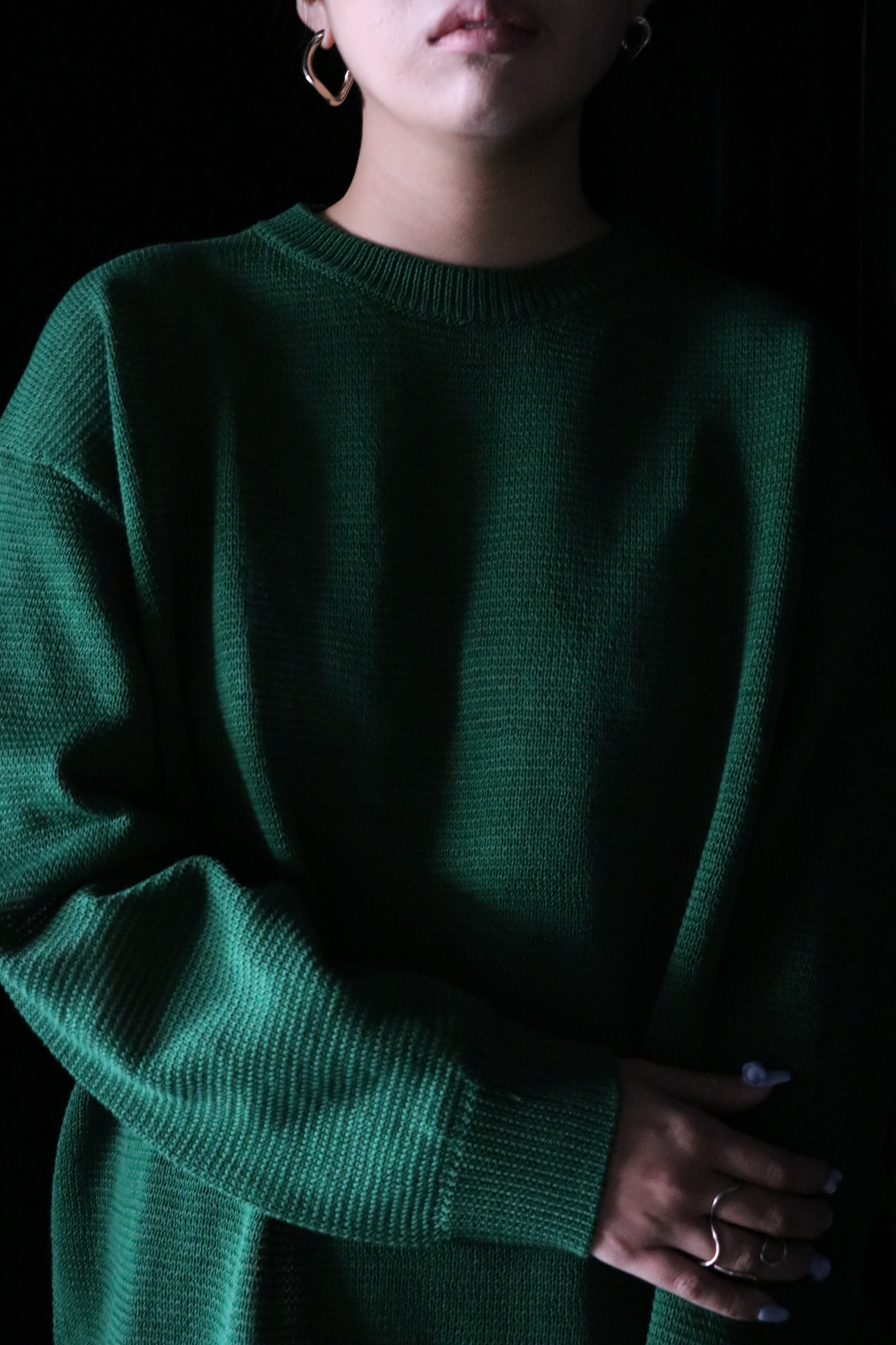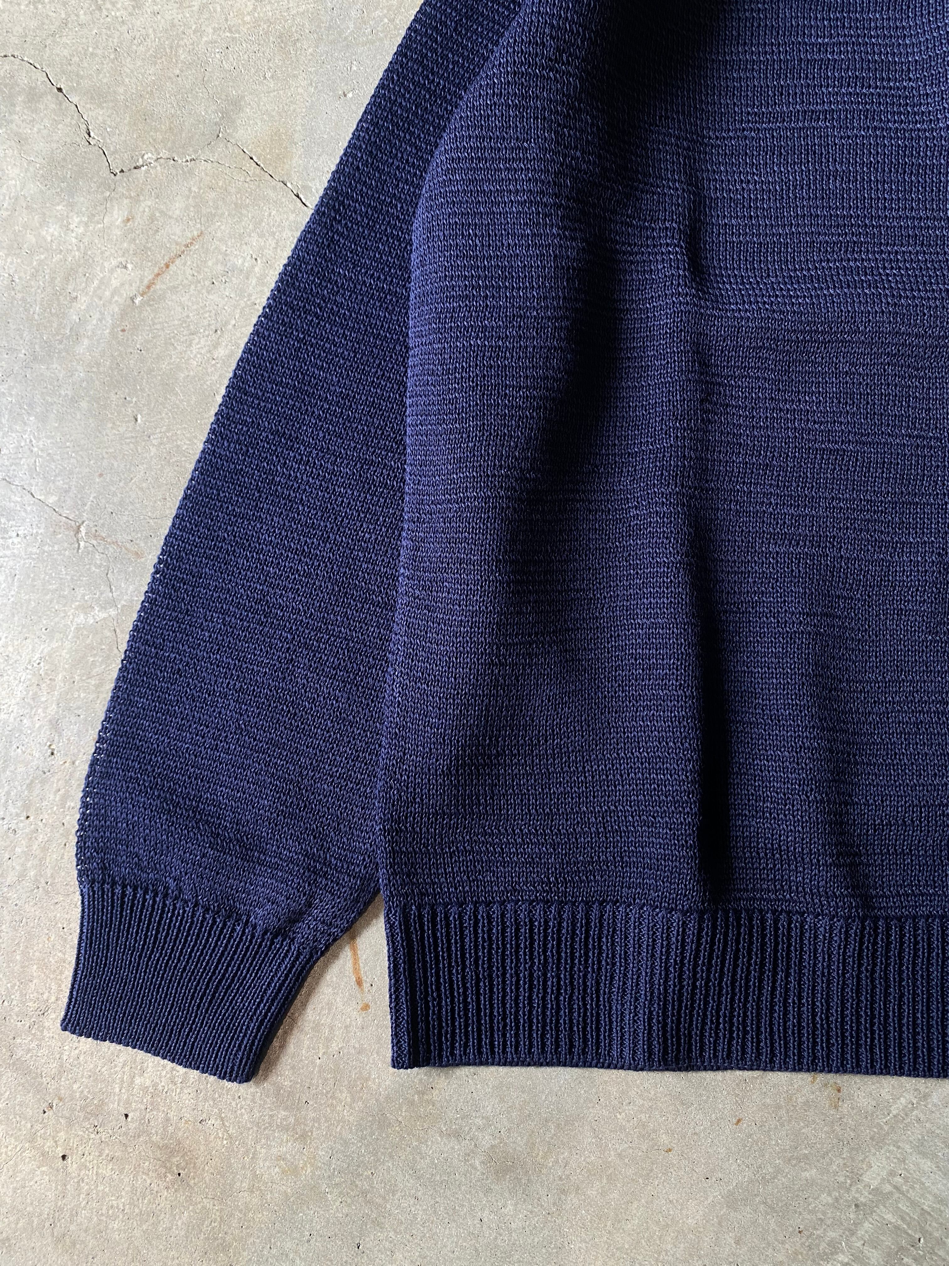 綿100%でありながら、麻のようなシャリみのあるドライな風合いが特徴です。清涼感のあるタッチと、程よい透け感のある編み地が軽やかな立体感を生み、春夏シーズンに心地よい着用感に。素材の表情が、ミニマルなデザインの中にさりげない奥行きを添えます。