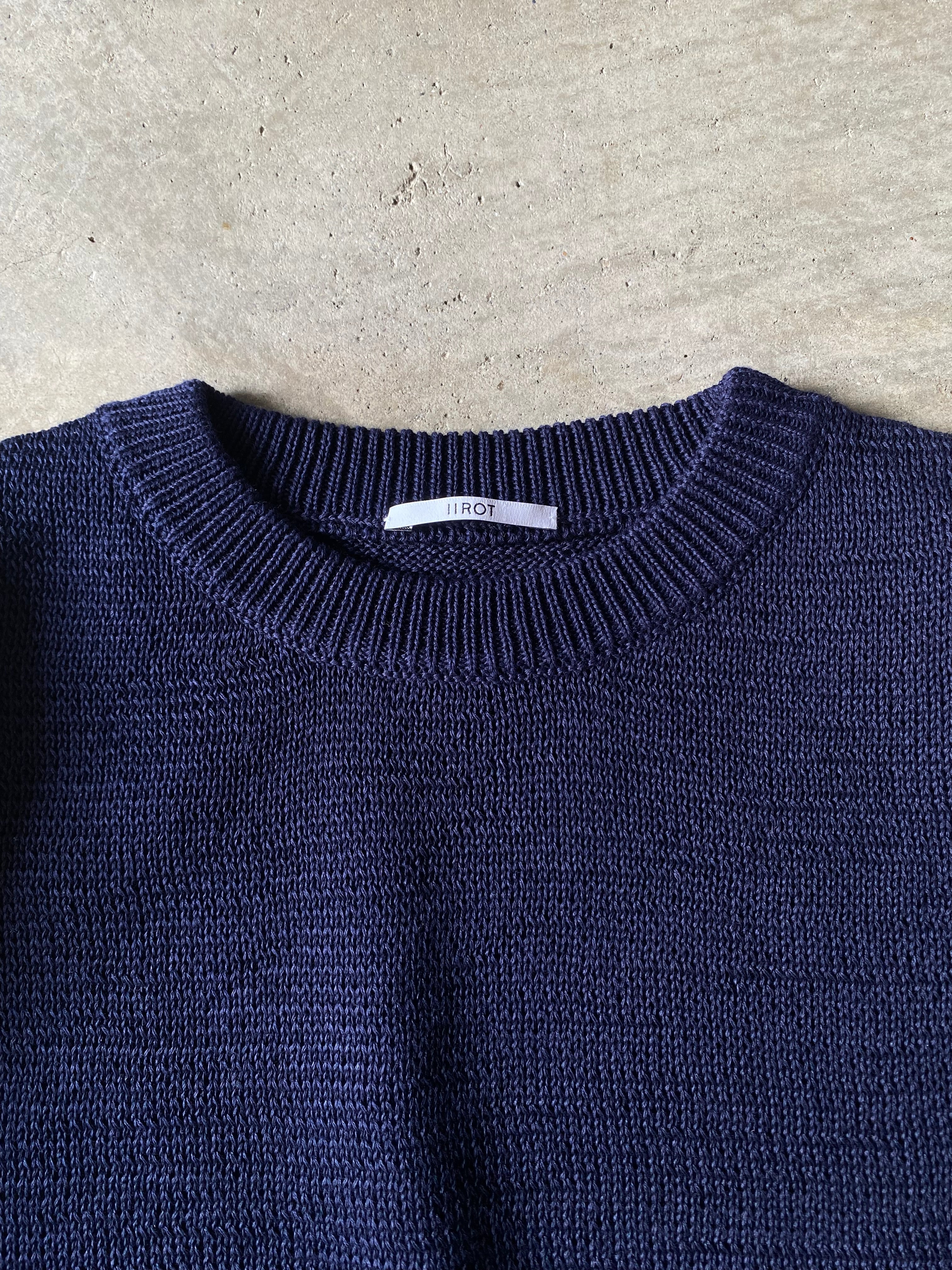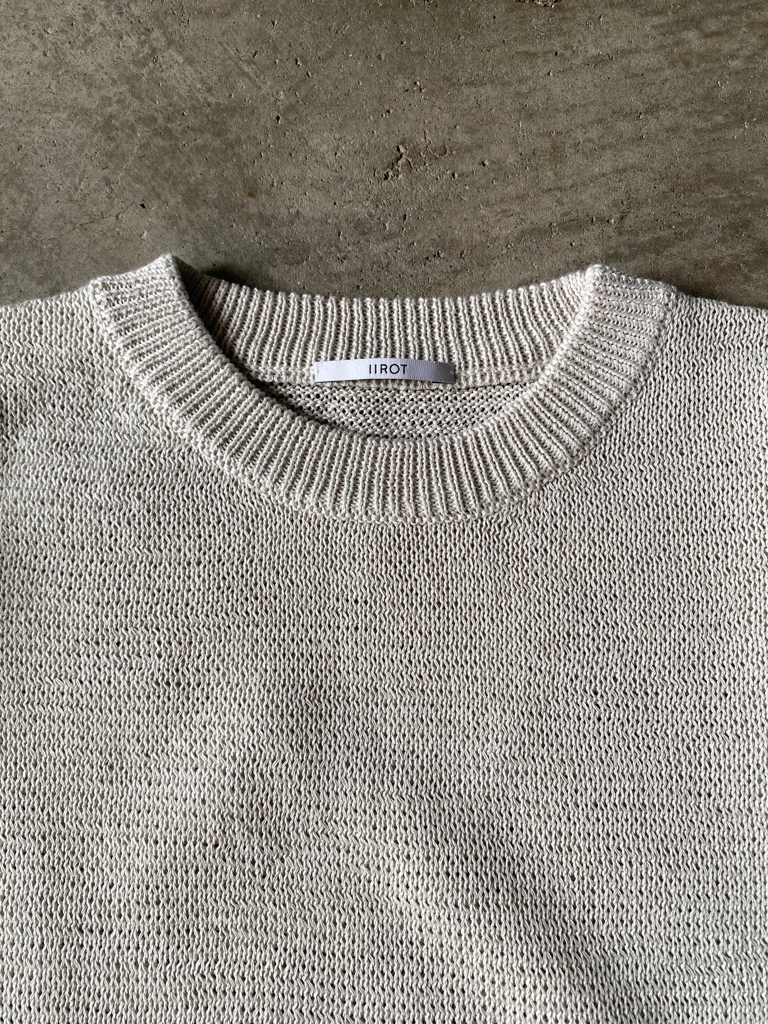 国産のコンニャク樹脂を使用したギマコットン糸を用いたニットトップス。