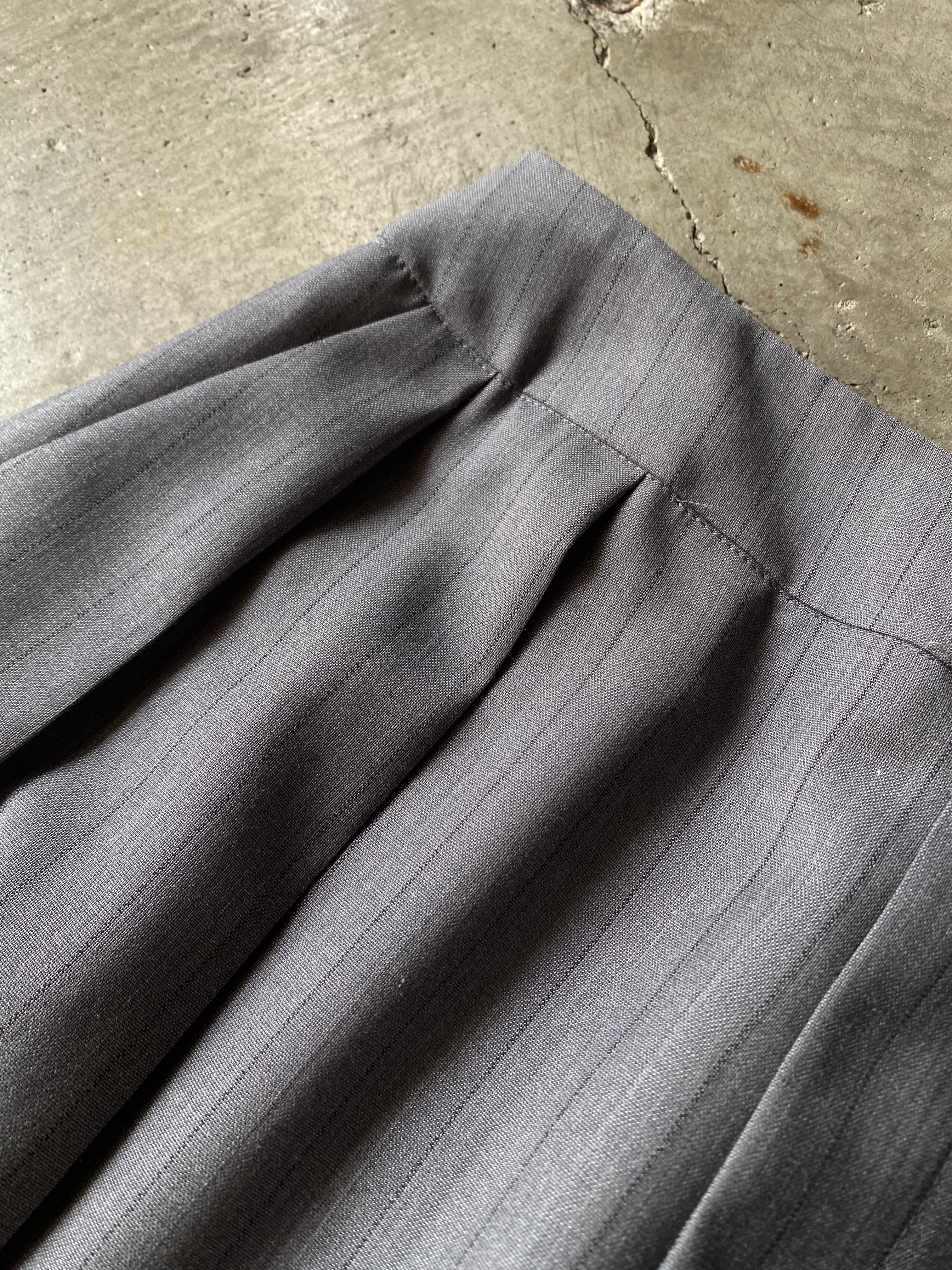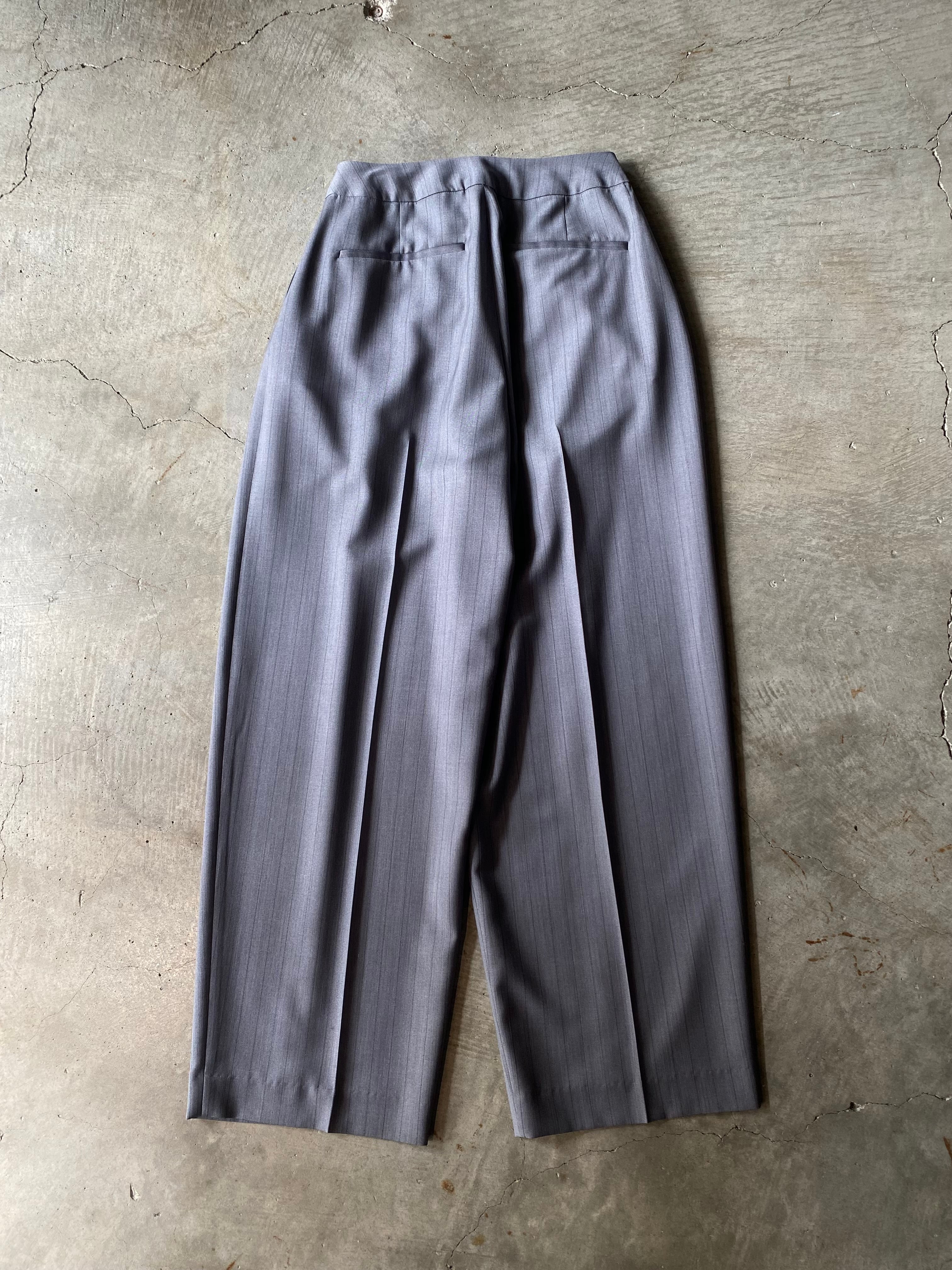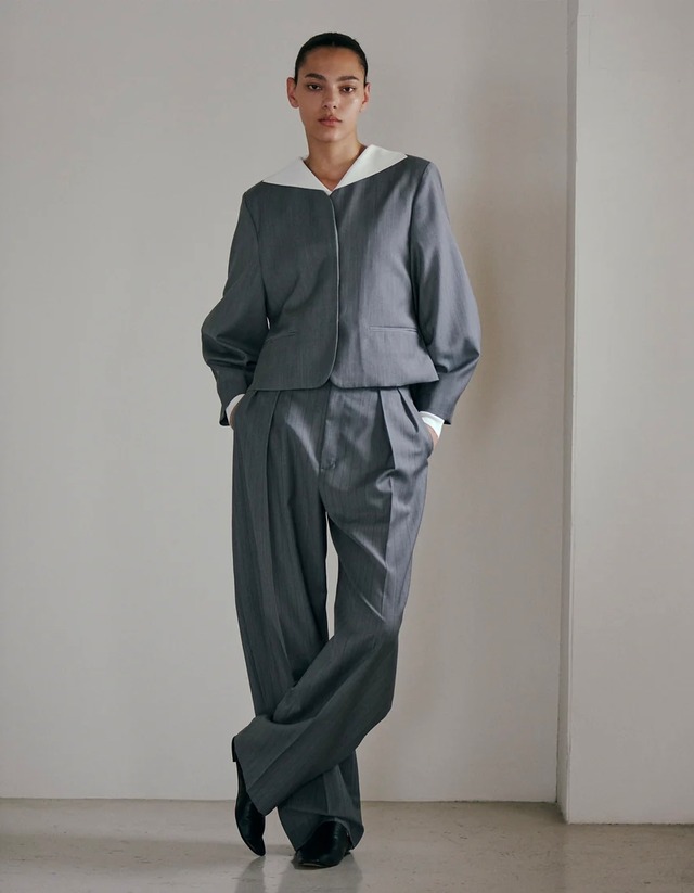 夏用の薄手平織梳毛を使用し、素材が持つ通気性と軽やかさを最大限に引き出したタックトラウザー。