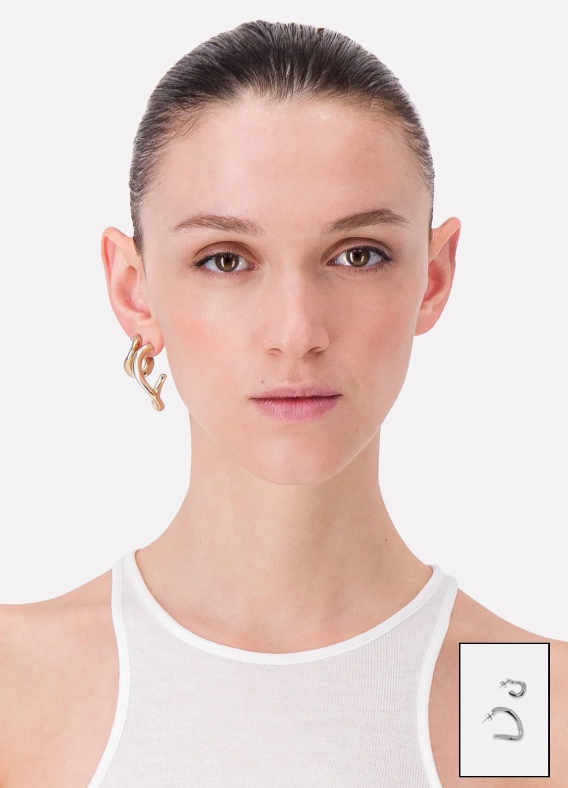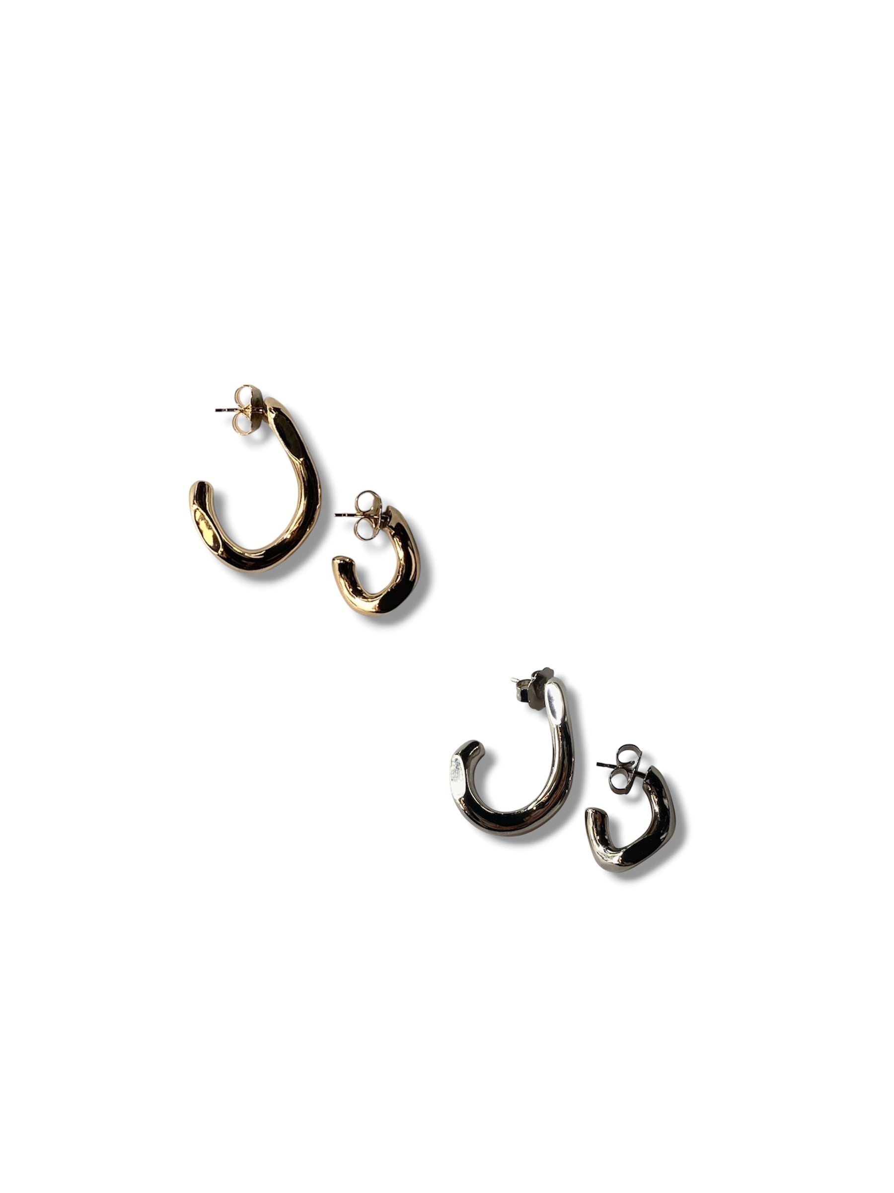 アシンメトリーにねじれた、エッジの効いたピアス。