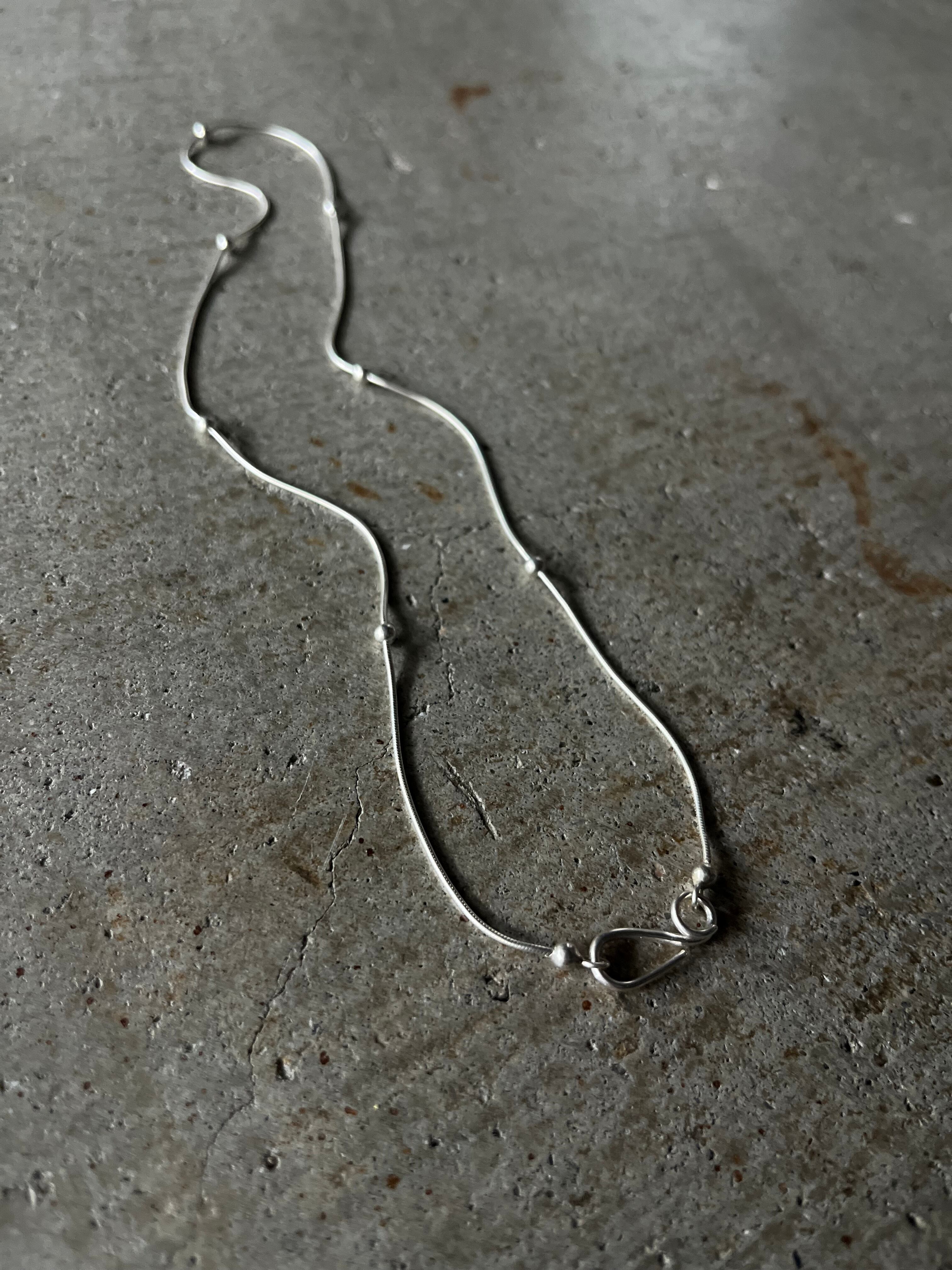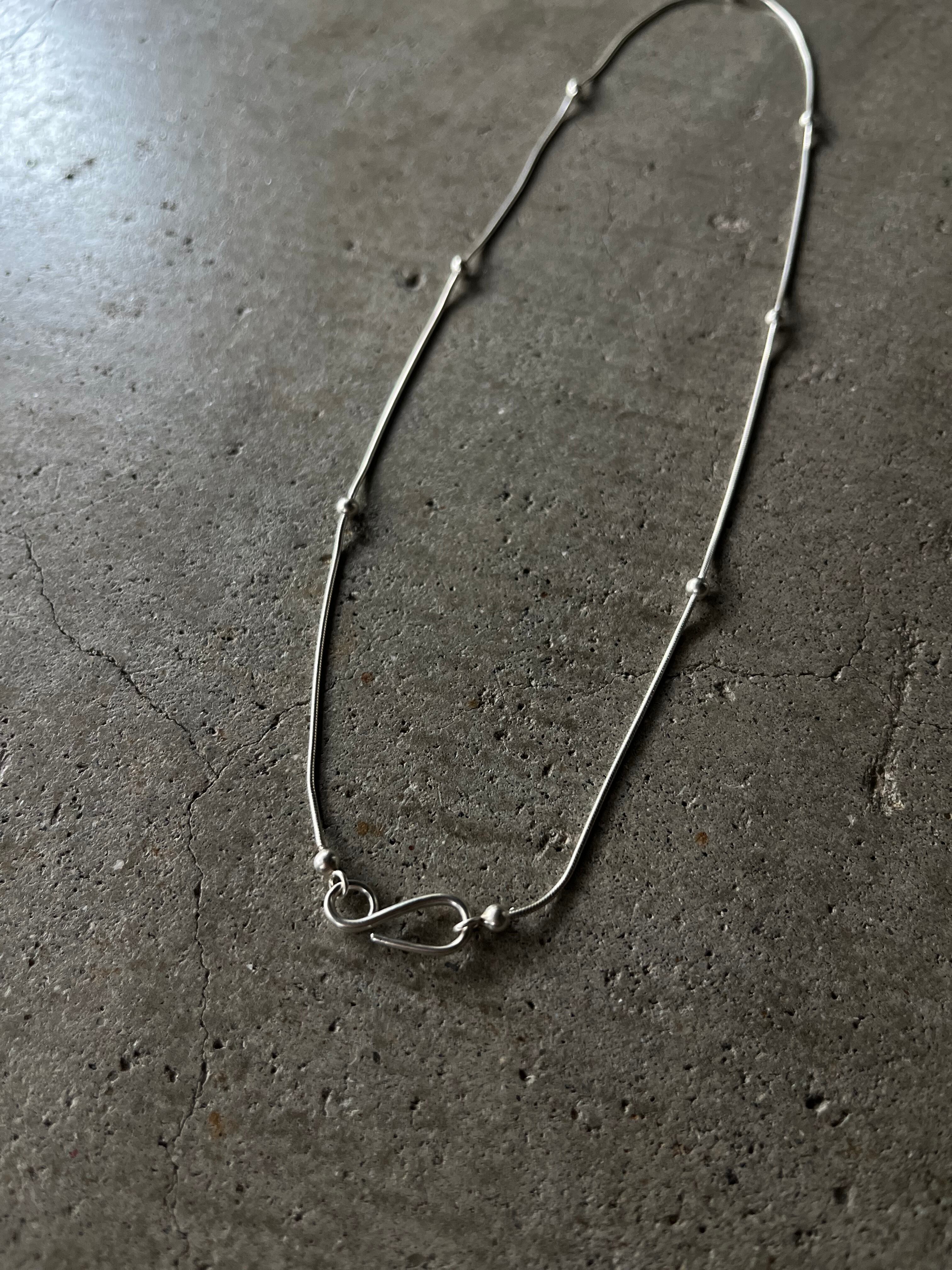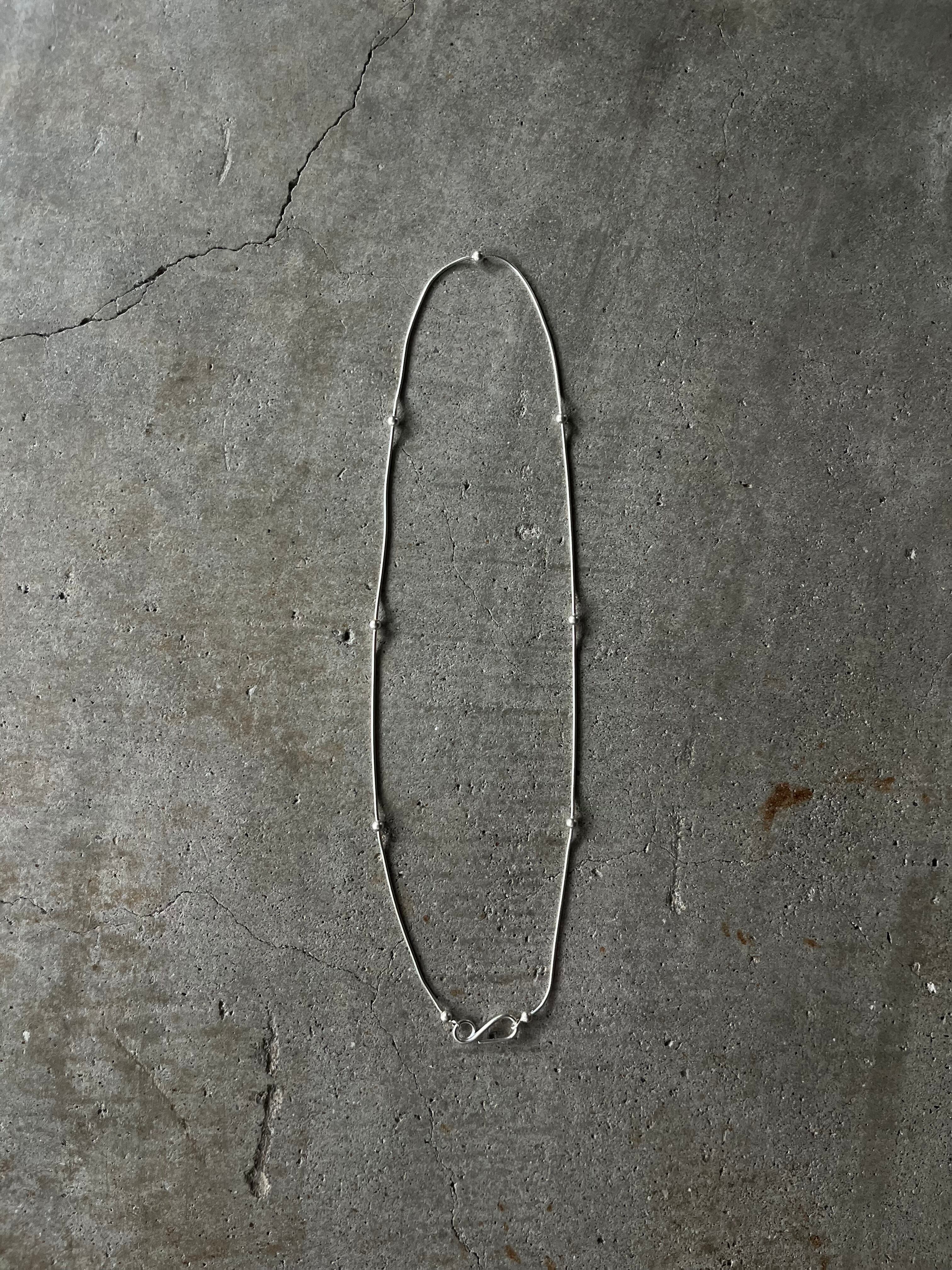 華奢なシルバーネックレス。シルバーの球体がアクセント。